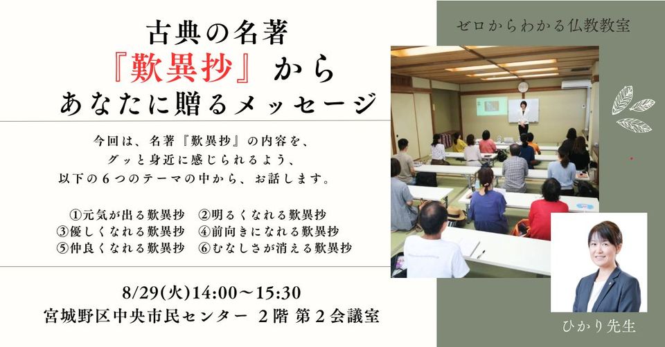 現在は主に東北各所で一般の方対象の仏教教室を開催。