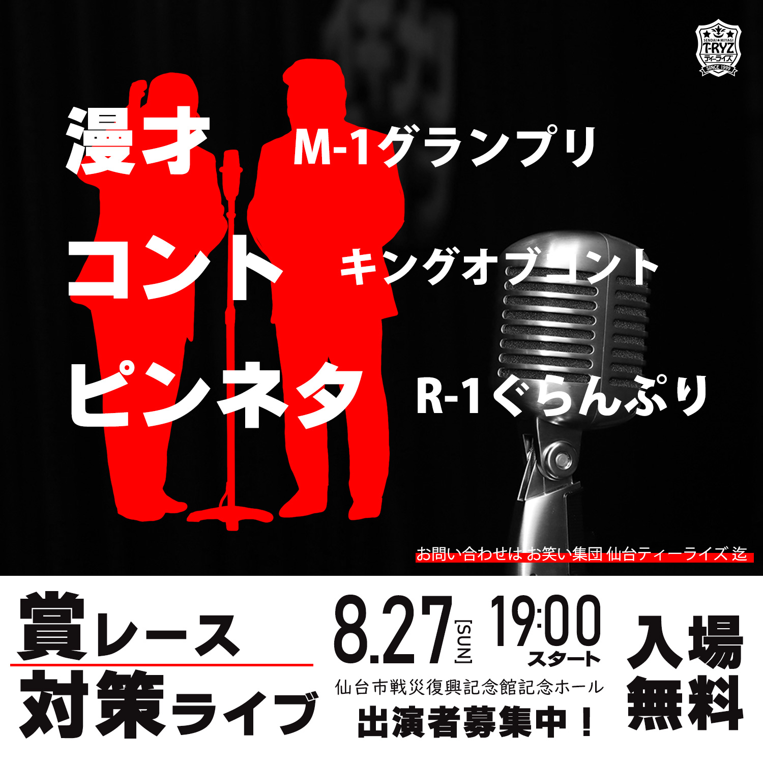 翌週の9/3に行われるM-1グランプリ1回戦仙台予選と同じ会場で行う対策ライブです。入場無料なのでお気軽にお越しください!