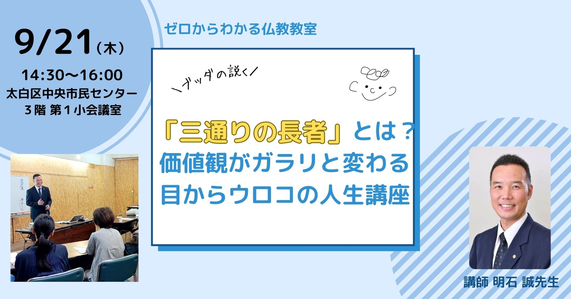 ◇9/21 (木) 14:30〜16:00 太白区中央市民センター3階 第1小会議室 (明石誠先生)