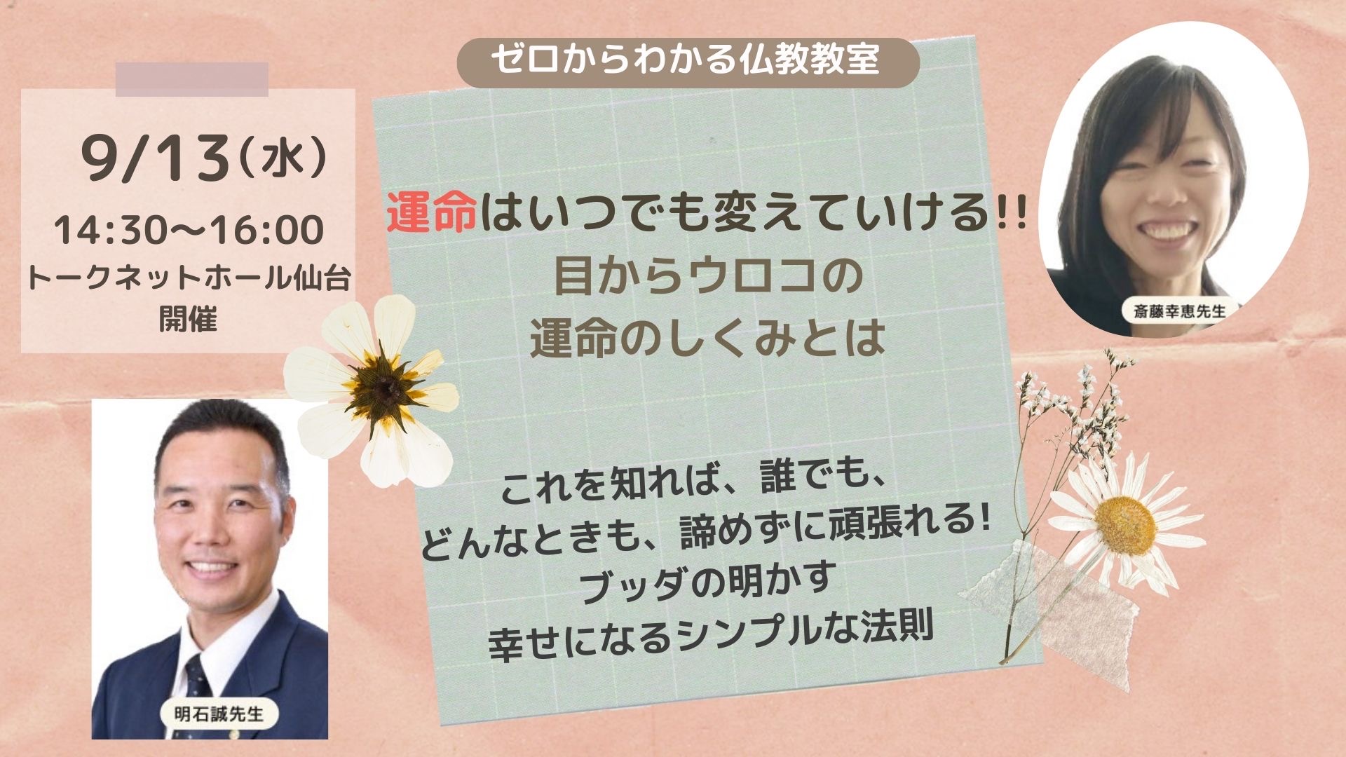 ◇9/13 (水) 14:30〜16:00 トークネットホール仙台(仙台市民会館)2階 第4会議室 (明石誠先生、斎藤幸恵先生)
