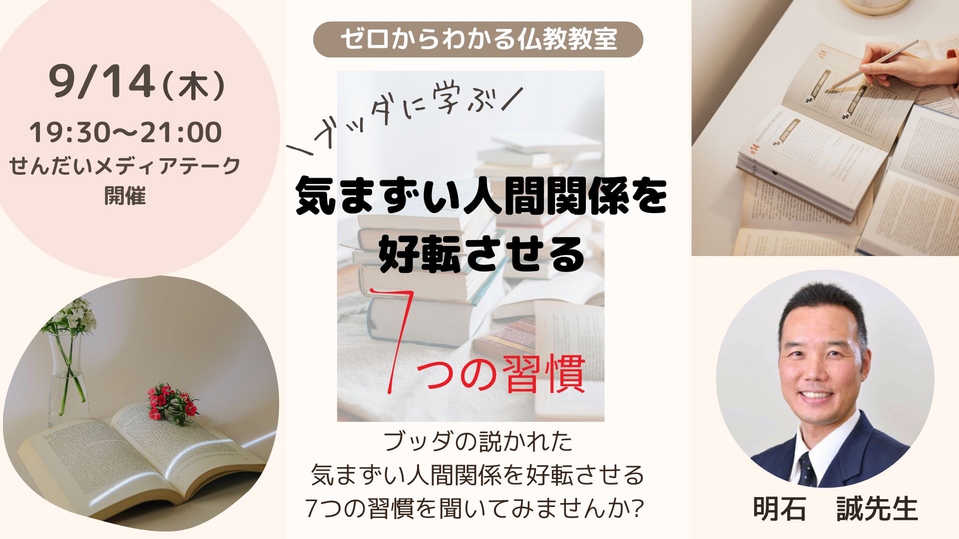 ◇9/14 (木) 19:30〜21:00 せんだいメディアテーク 7階 会議室a (明石誠先生)