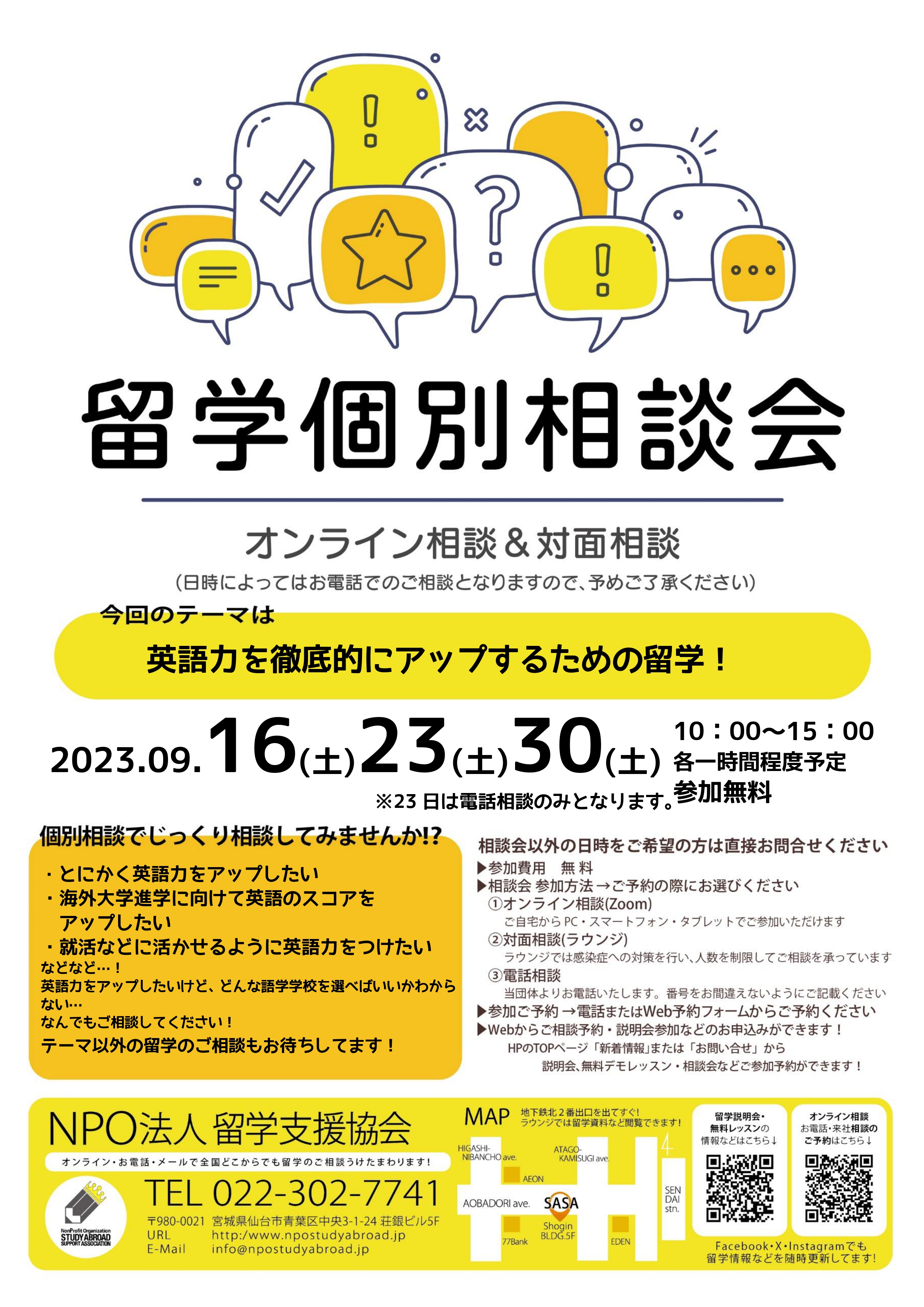 ※23(土)のご相談はお電話のみとなりますのでご了承ください。