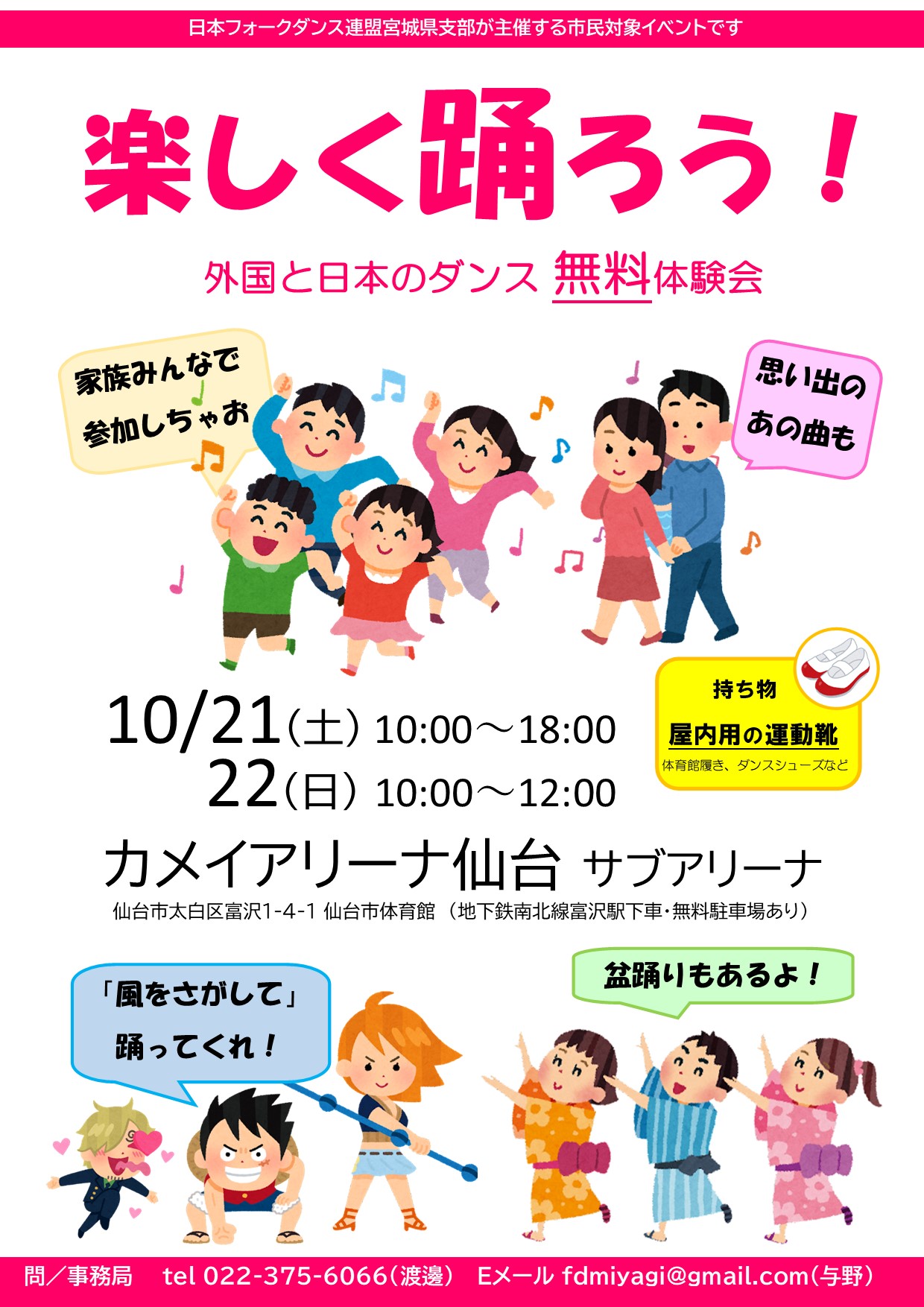 問い合わせ/事務局 022-375-6066(渡邊) Eメール fdmiyagi@gmail.com(与野)