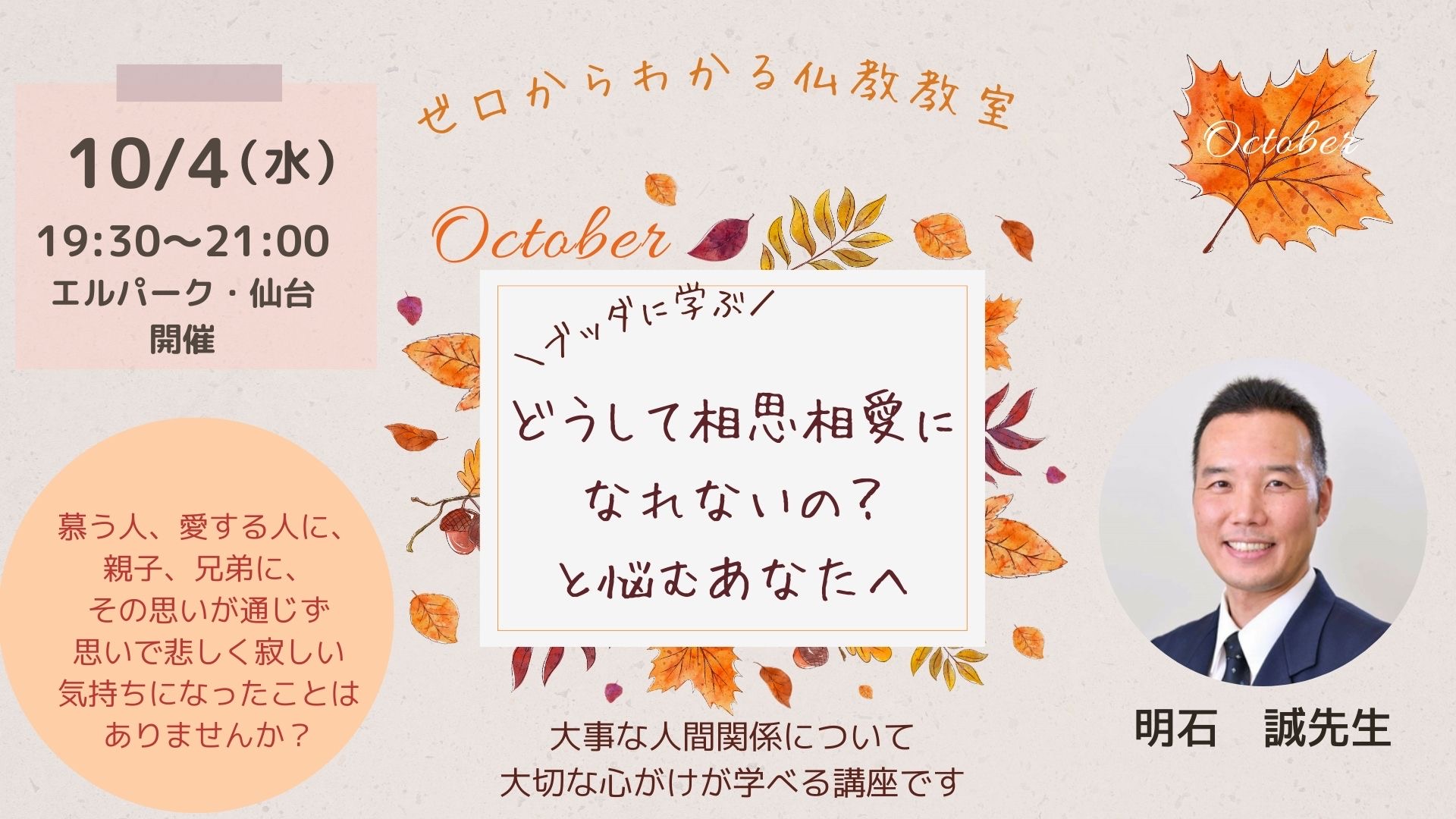 ◇10/4 (水) 19:30〜21:00 エル・パーク仙台 5階 セミナー室