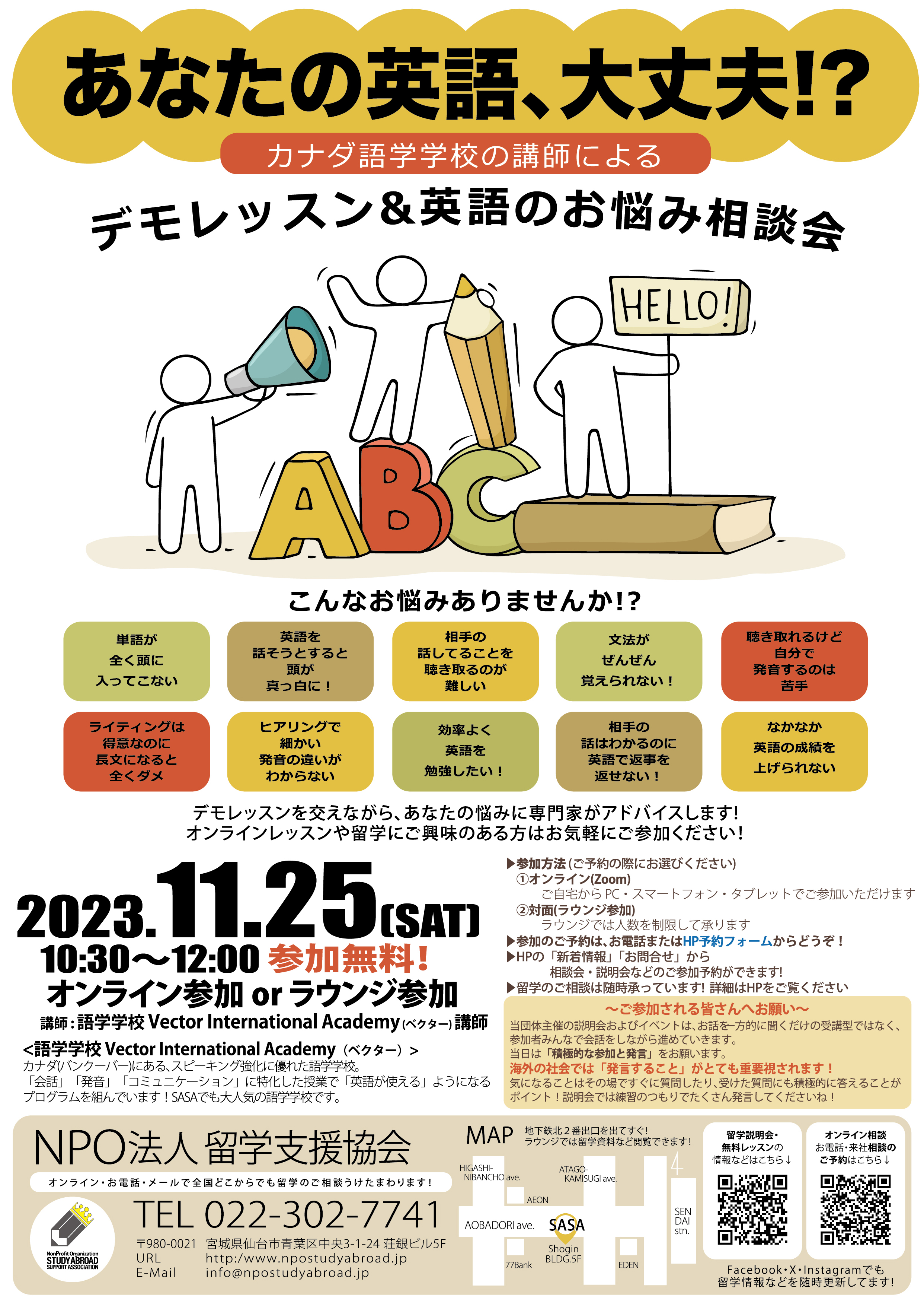 カナダ語学学校講師によるデモレッスン&英語お悩み相談会