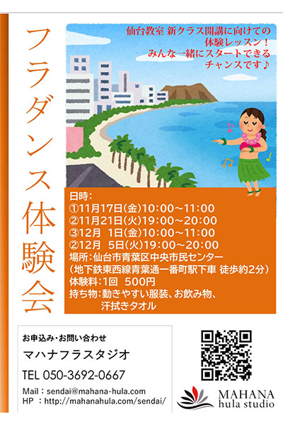 そろそろ運動したい方!リラックスして楽しみたい方!フラダンス気になっていた方!