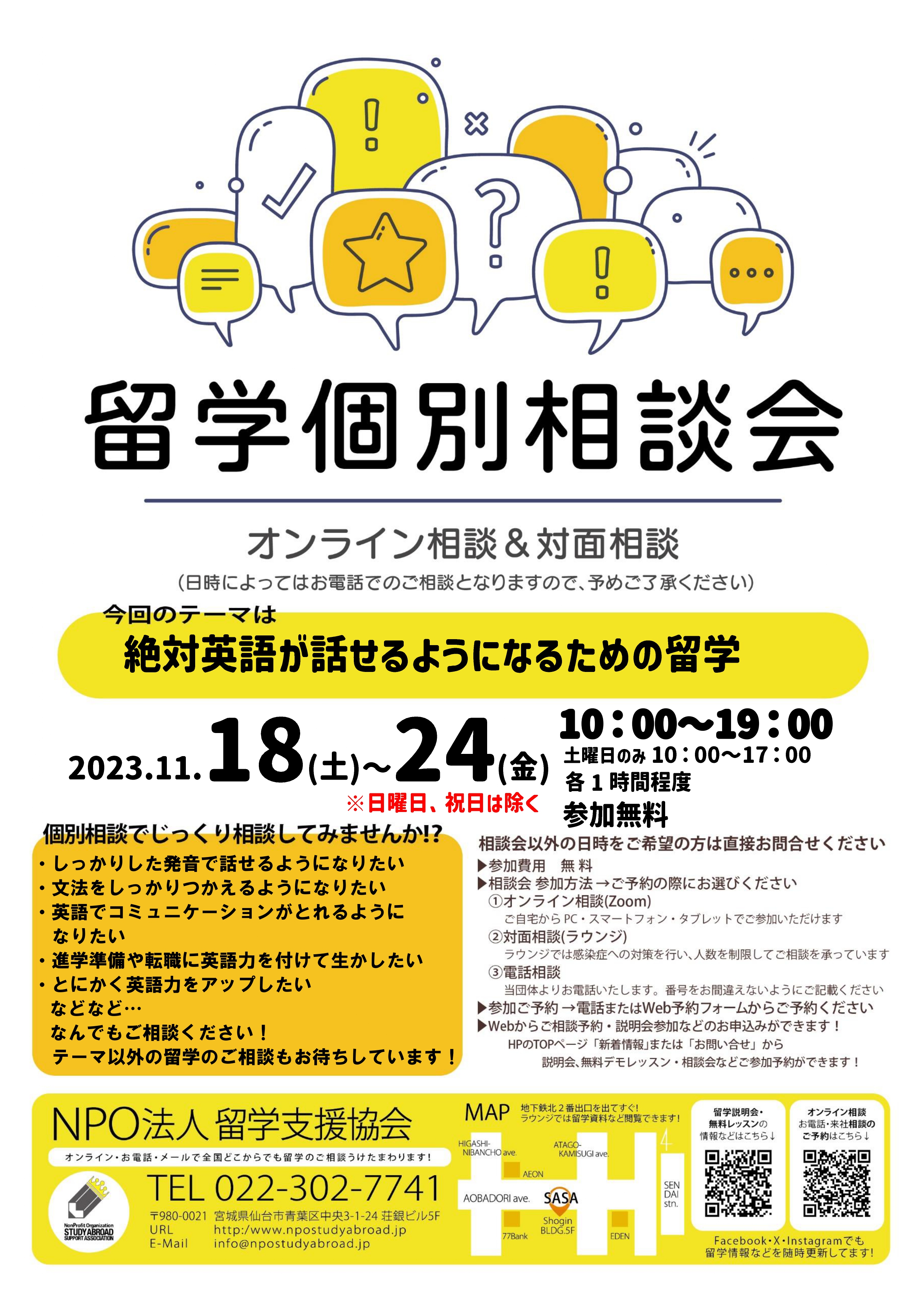 「留学個別相談会”絶対英語が話せるようになるための留学”」