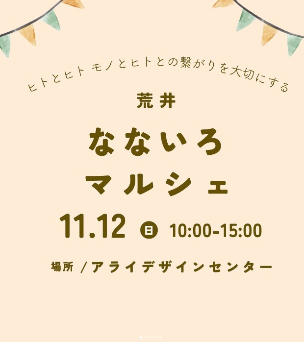 荒井なないろマルシェは「ヒトとヒト モノとヒトとの繋か?りを大切に」今月も開催いたします.*・゚