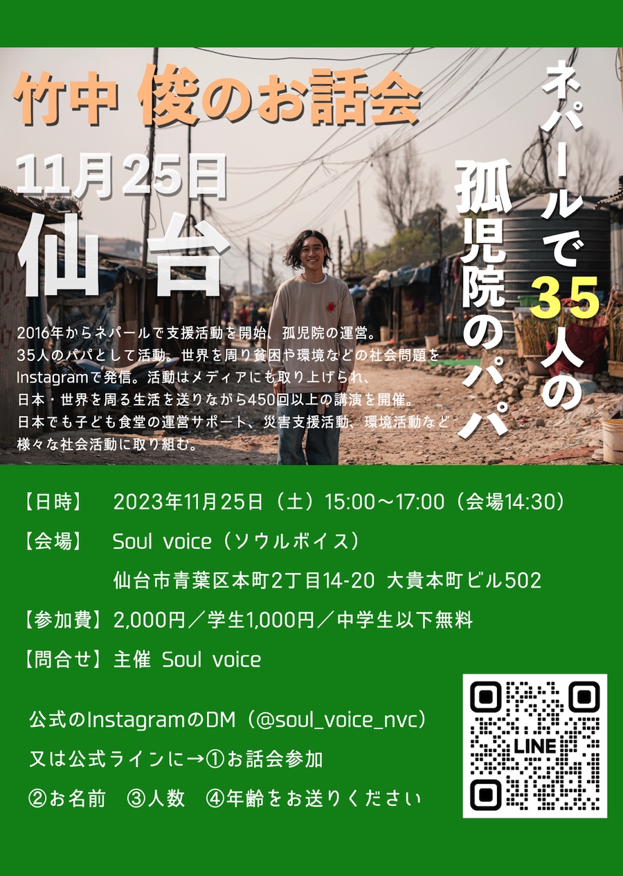 《仙台》ネパールで35人の孤児院のパパ 【 竹中 俊のお話会 】