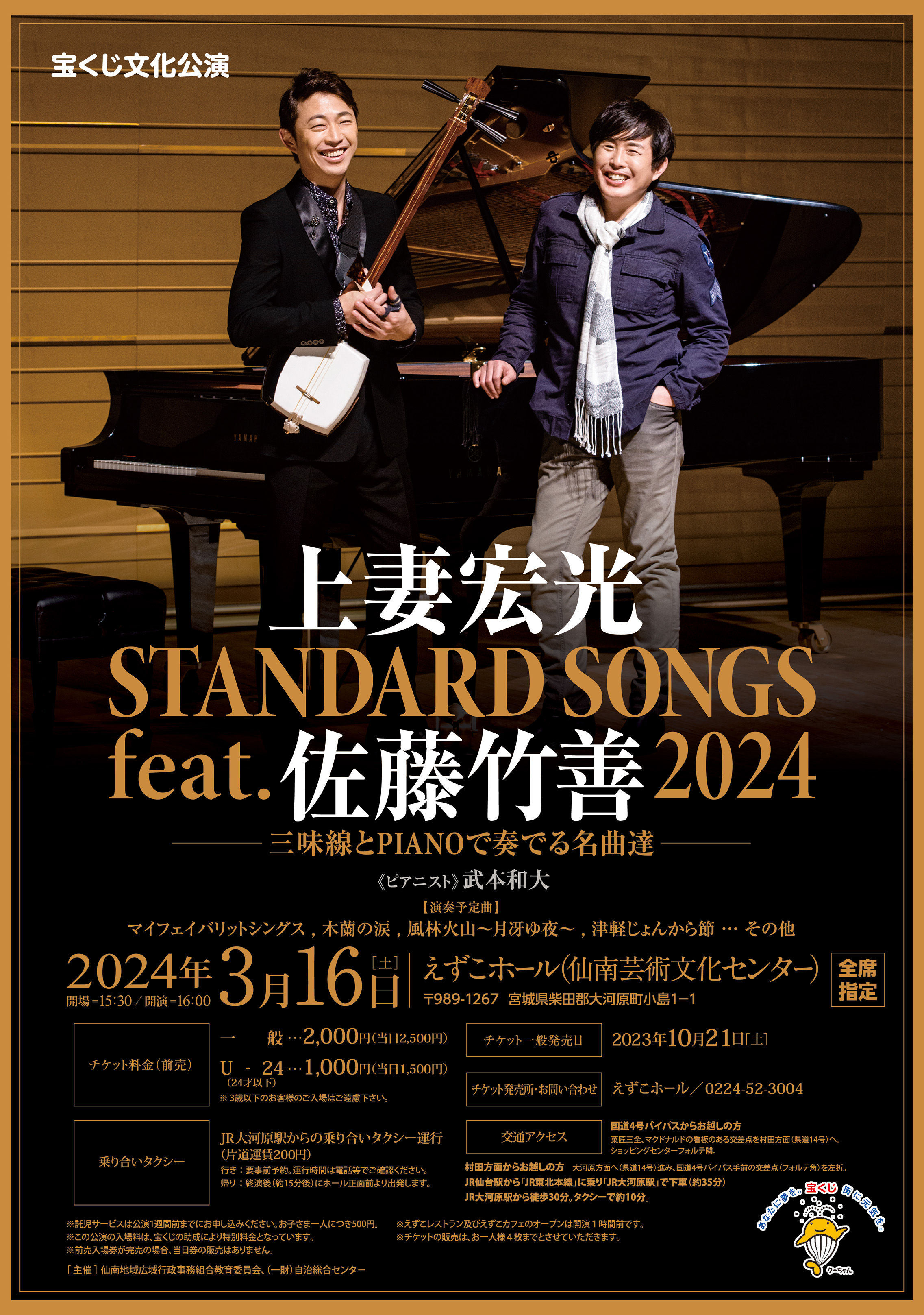 宝くじ文化公演 上妻宏光"Standard Songs" feat. 佐藤竹善 -三味線と PIANO で奏でる名曲たち-