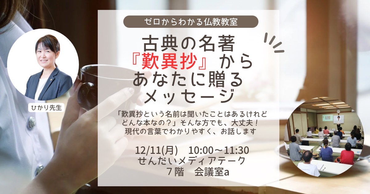 12/11 (月)朝・仙台開催『古典の名著「歎異抄」から、あなたに贈るメッセージ』