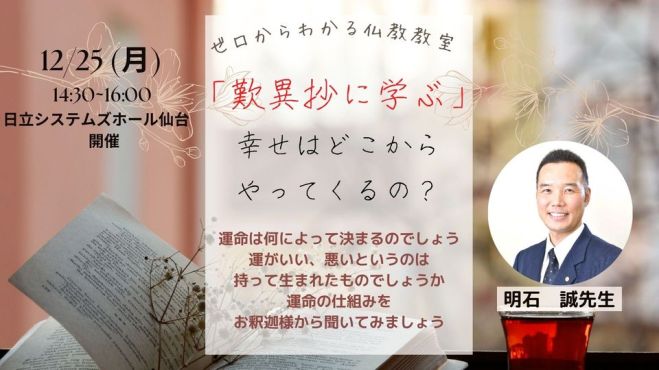 ◇12/25 (月) 14:30〜16:00 日立システムズホール仙台 2階 研修室3 (明石誠先生)