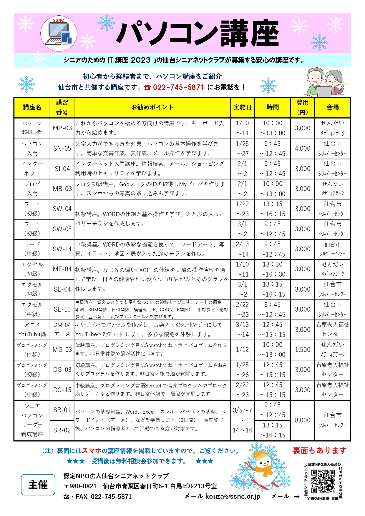 令和6年度の1月〜がら3月までのパソコン講座の紹介です。