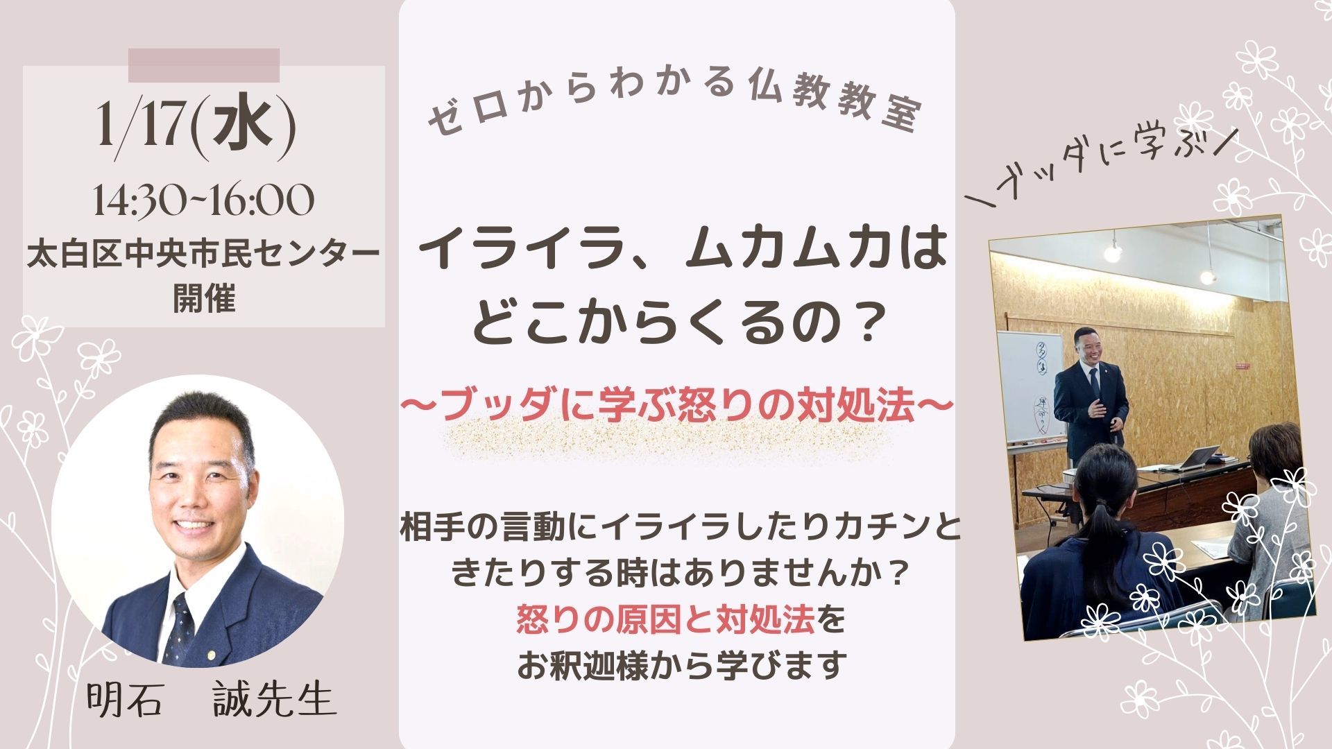どうしてそんなこと言うの?どうしてそんな事やるの?と相手の言動にイライラしたりカチンときたりする時はありませんか?一体その怒りはどこからくるのでしょう。怒りの原因と対処法をお釈迦様から学びます。