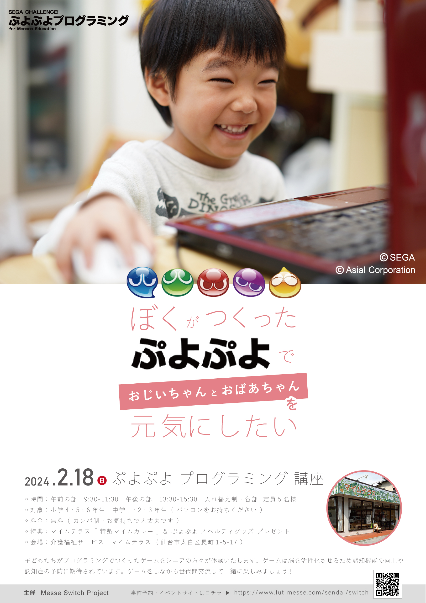 子どもたちがプログラミングでつくったゲームをシニアの方々が体験いたします。