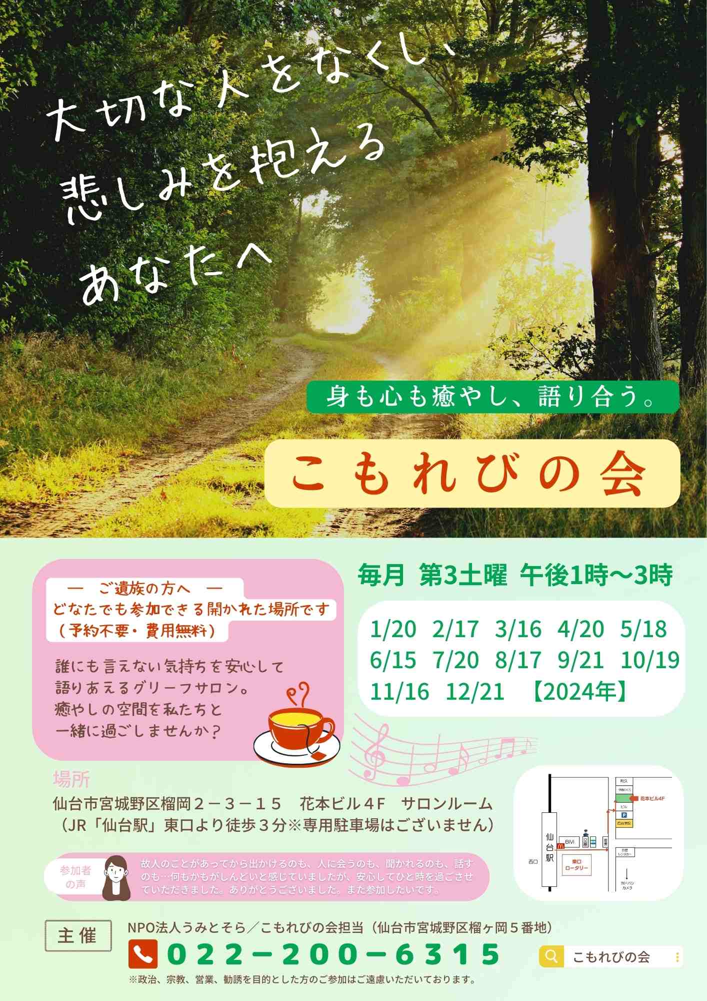 【癒やしの空間を一緒に過ごしませんか?】グリーフサロン〜こもれびの会〜次回2024年1/20(土)