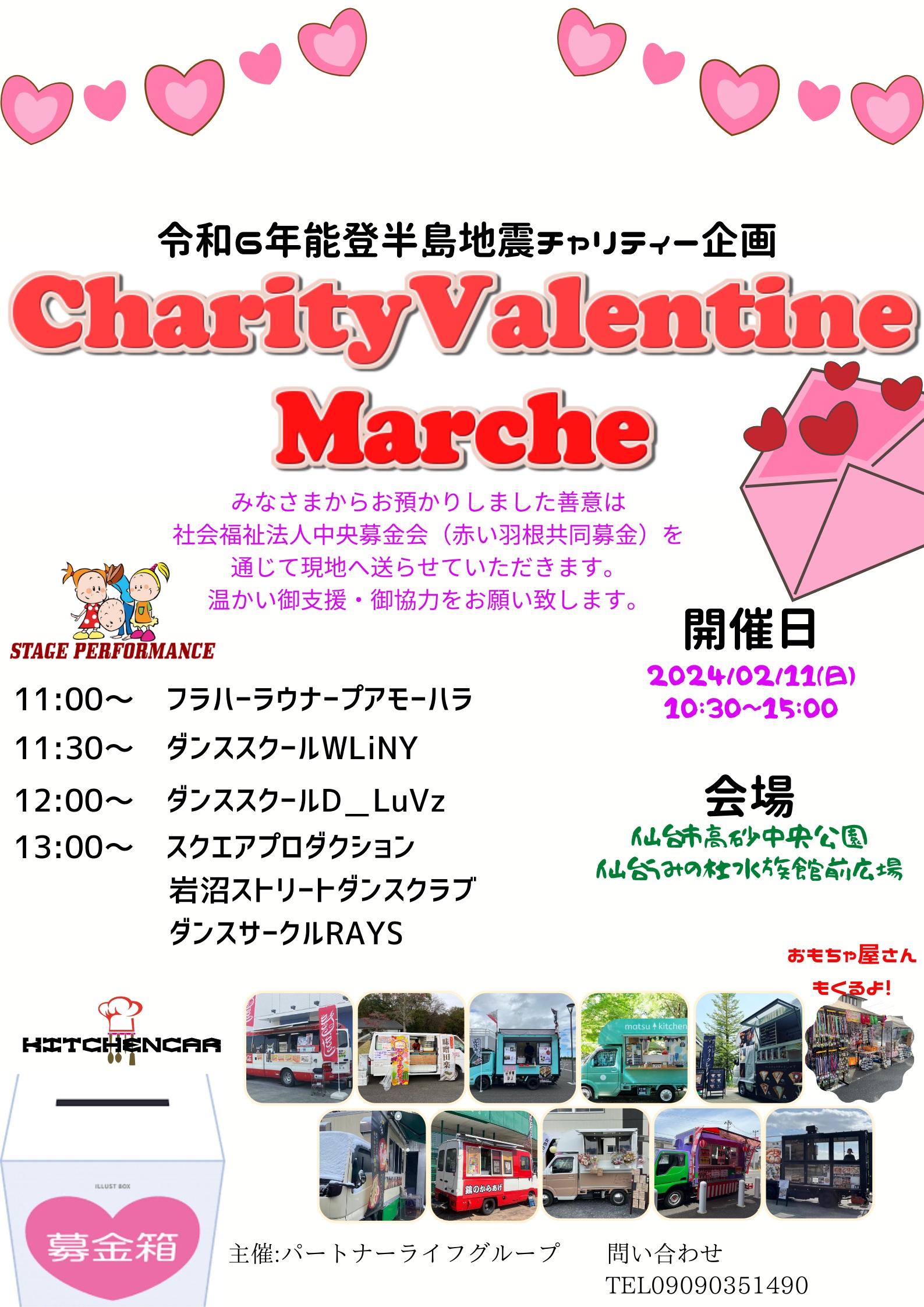 先の2011年3月11日東日本大震災で多くの御支援をいただきました御礼を兼ねて、仙台うみの杜水族館前広場(高砂中央公園)にて、