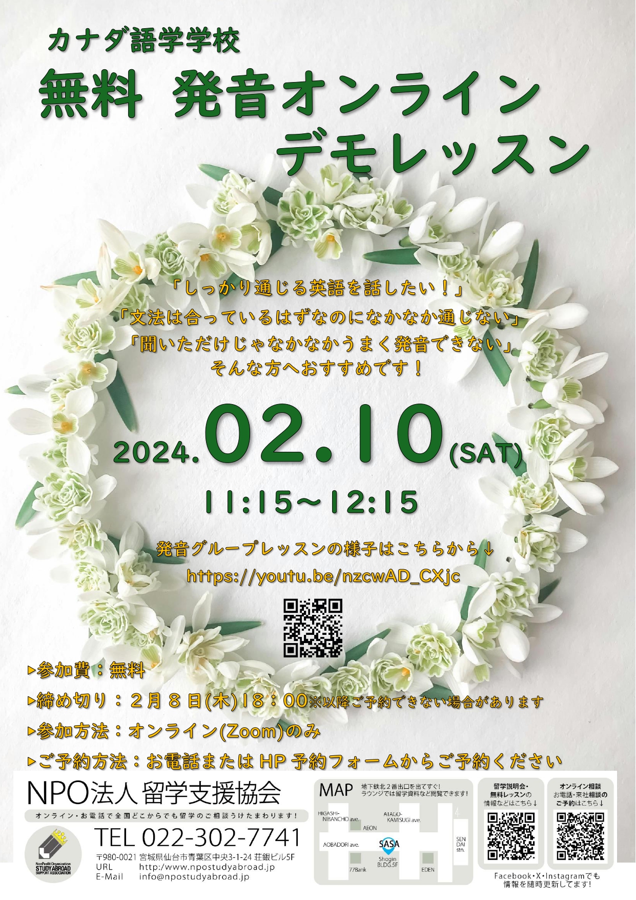 カナダ語学学校 無料発音オンラインデモレッスン