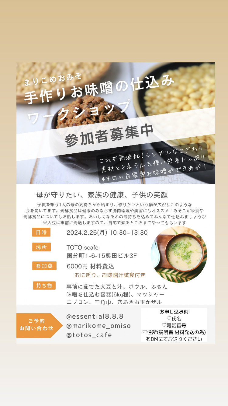 【手作りお味噌の仕込みWS】
