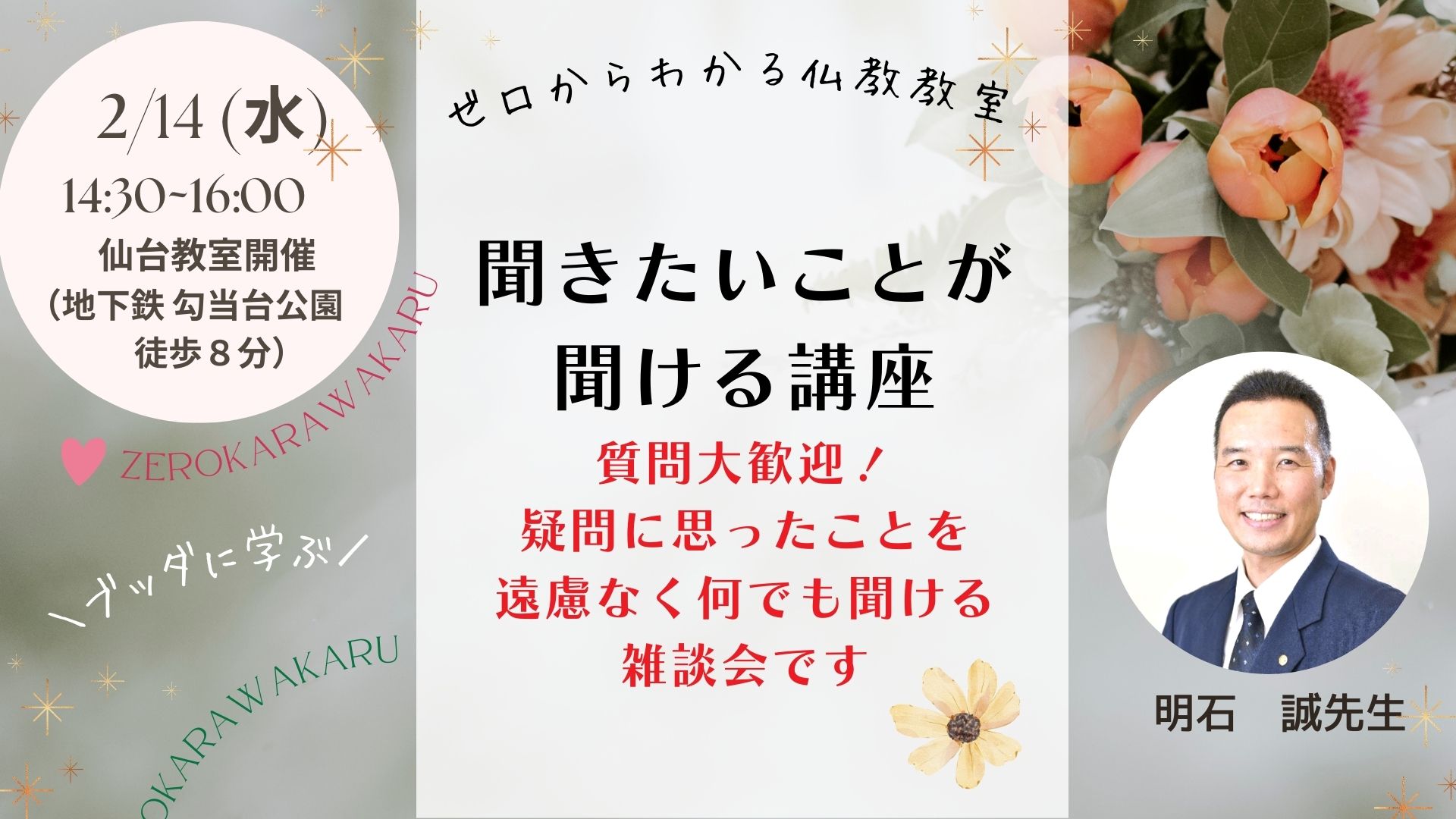◇2/14 (水) 14:30〜16:00 仙台教室 (明石誠先生)