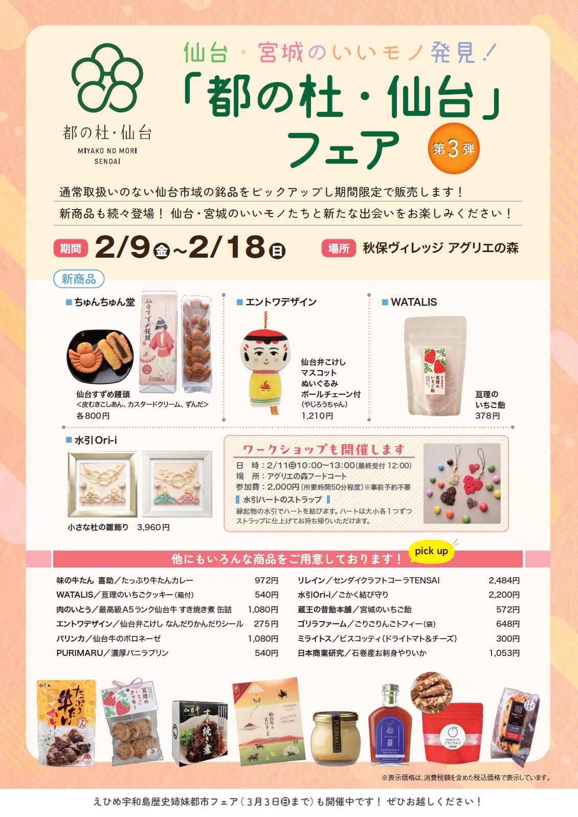 普段アグリエの森では、取り扱いっていない、宮城・仙台市域の銘品も販売されておりますので、アグリエの森にお立ち寄りの際はぜひご利用ください。