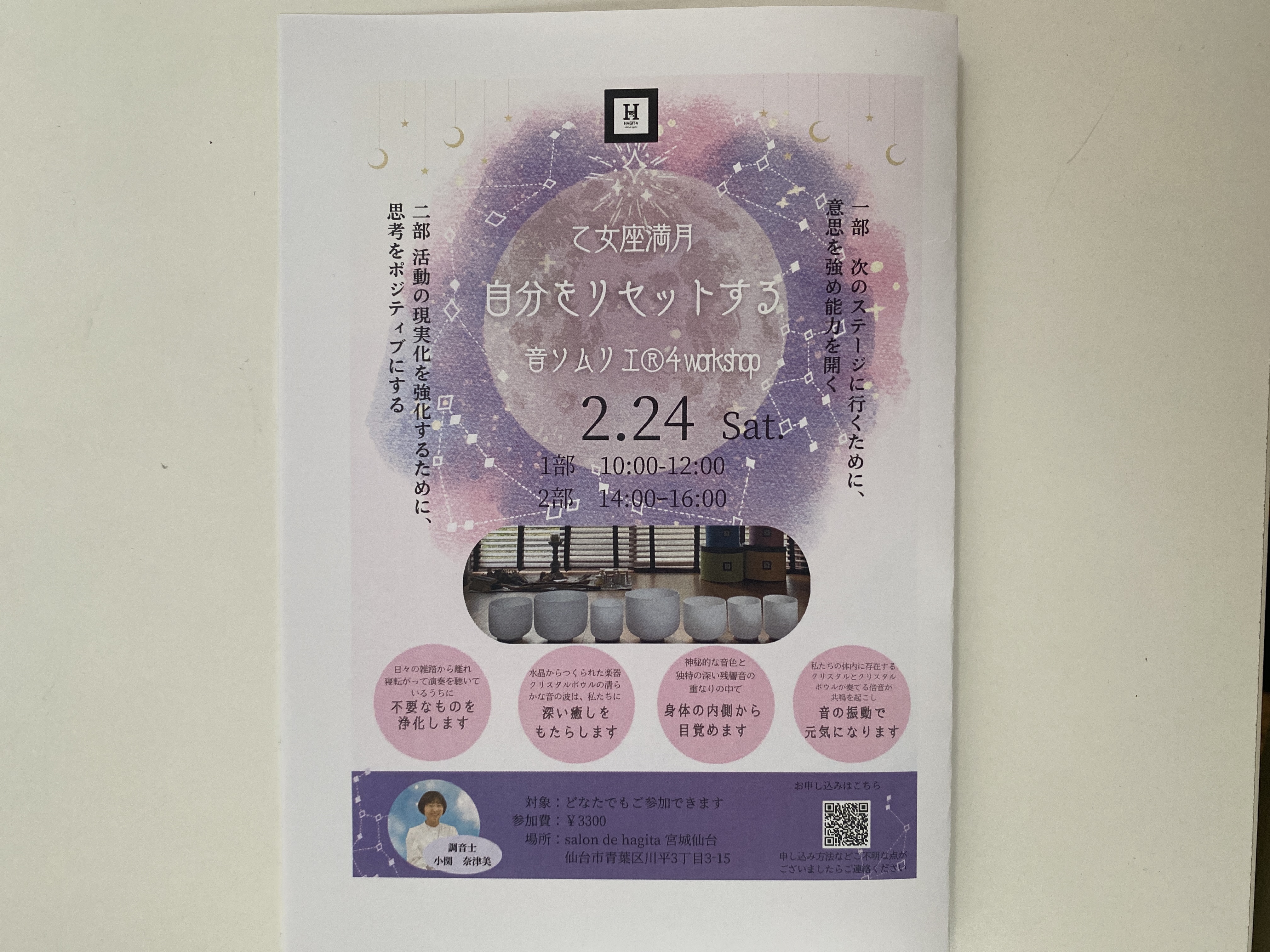2/24(土) 【宮城仙台】乙女座満月 自分をリセットする 音ソムリエ?? 4workshop 2部開催