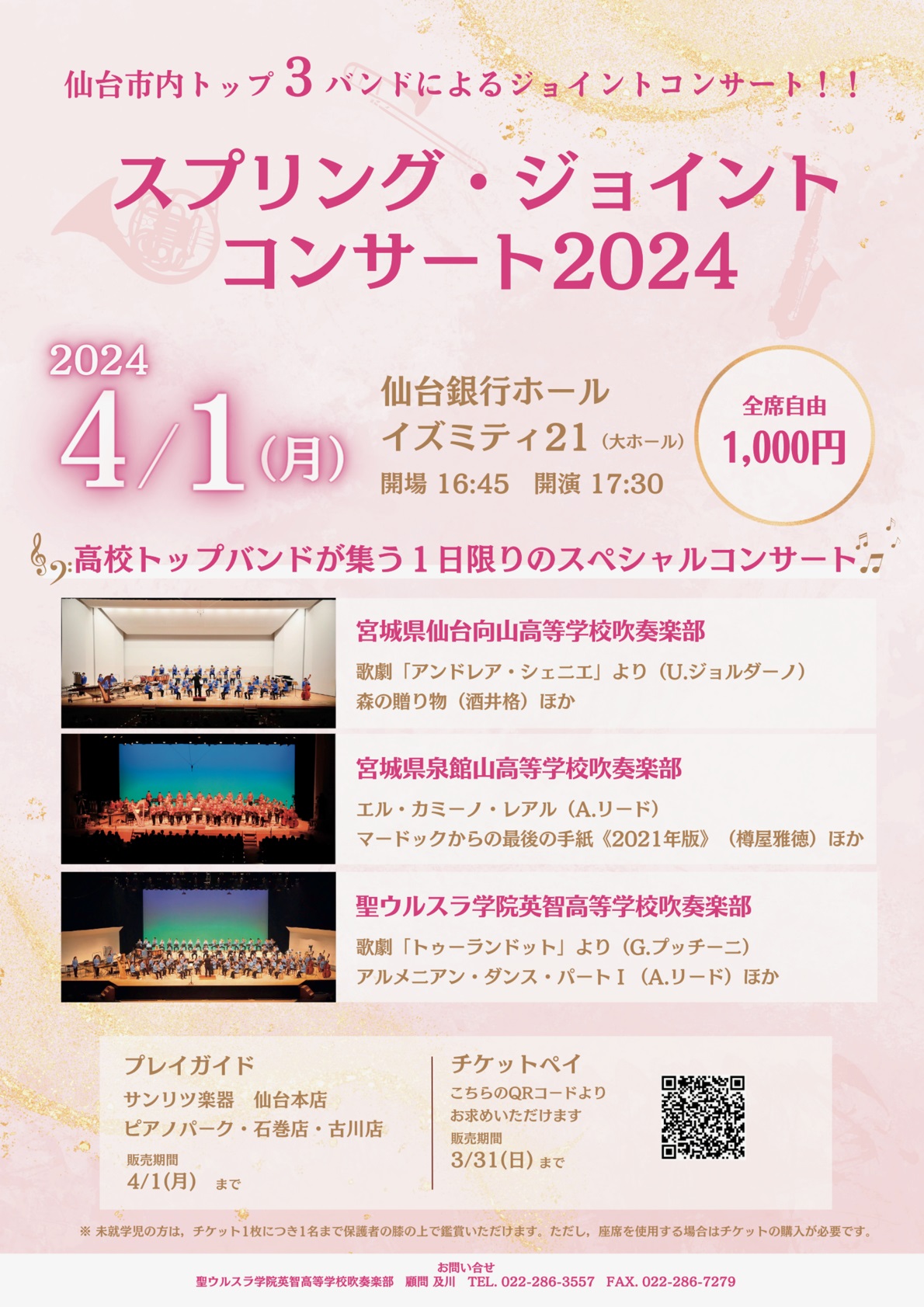仙台向山高校、泉館山高校、聖ウルスラ学院英智高校の3校で演奏会を開催します!