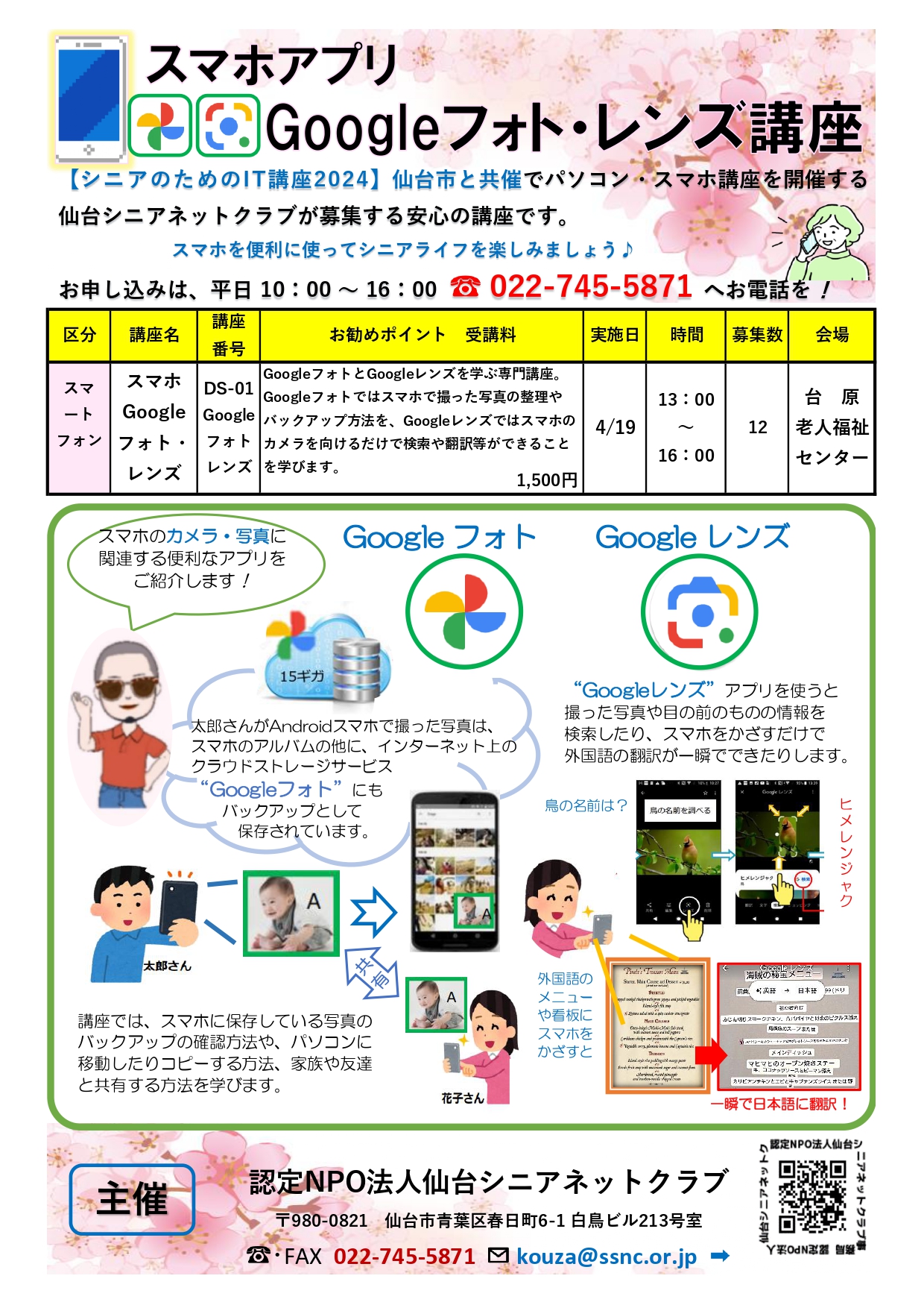 スマホアプリ「Googleフォト・レンズ」講座のご案内