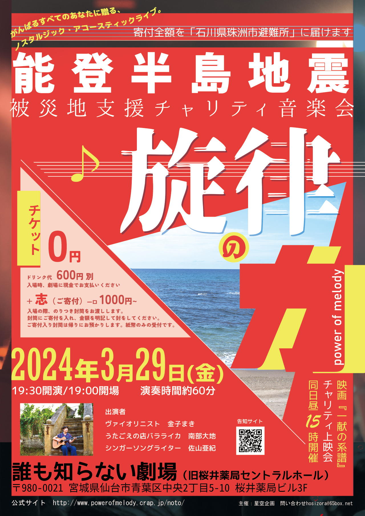 つきましては、本企画は会場経費の差し引きなど一切なく、お寄せいただいた志の全額を被災地のために寄付します。