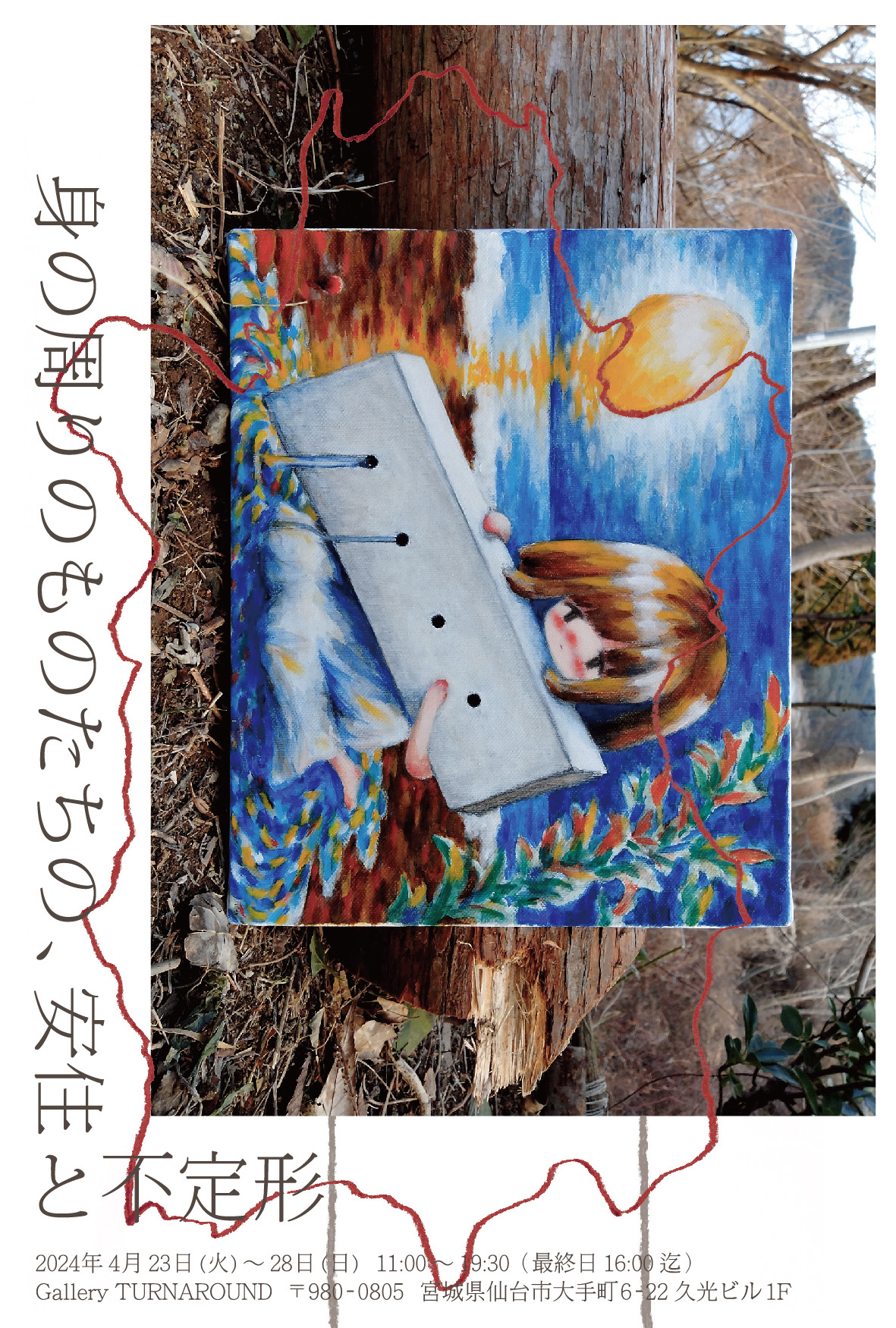 本展覧会では、2020年から現在までに制作した油彩の絵約50点と、伐倒した木、鞣した革などを展示します。