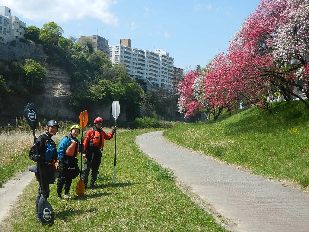 サクラの次は、米ヶ袋のハナモモの花です。ここには駐車場がないので、カヌーで訪問するのがおすすめ。一本の木から、白とピンクの花が一緒に咲く「源平咲き」を楽しみましょう。花を愛してやまないご同輩!! チャレンジお待ちしています!