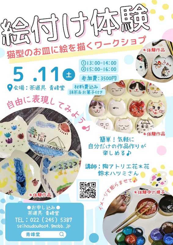 *作ったお皿は講師の自宅の窯(800℃)で焼きますので、仕上がりましたら青峰堂まで取りに来て頂きます(発送もOKです。予めご相談くださいませ)
