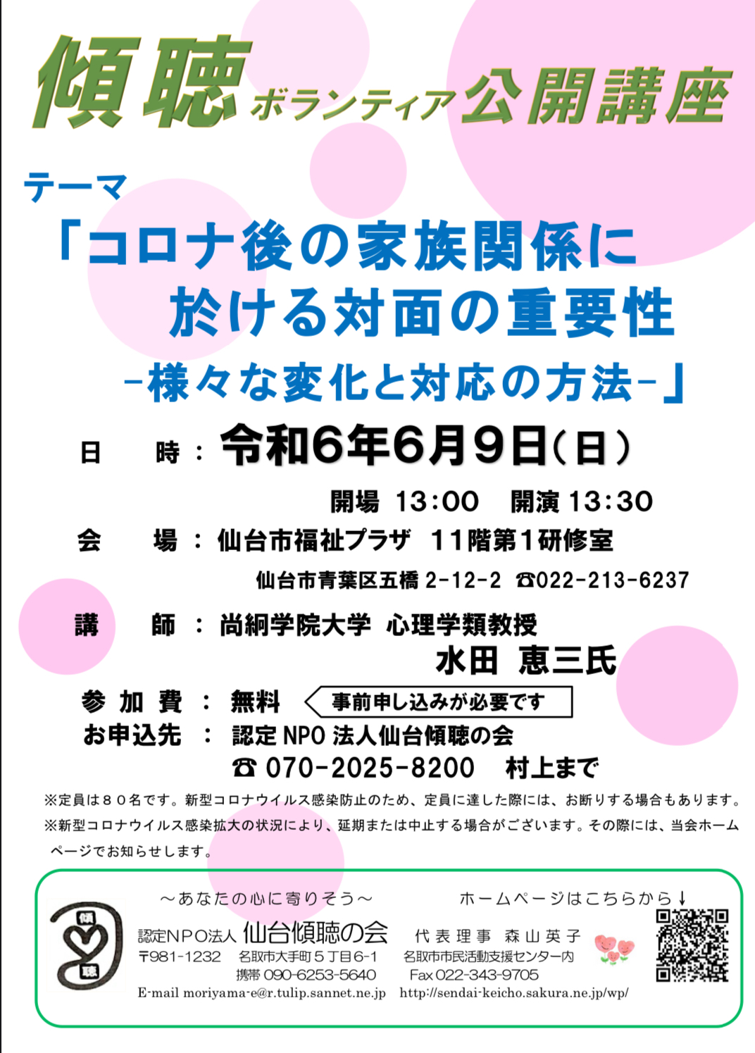 お申込み予約先: 認定NPO法人 仙台傾聴の会