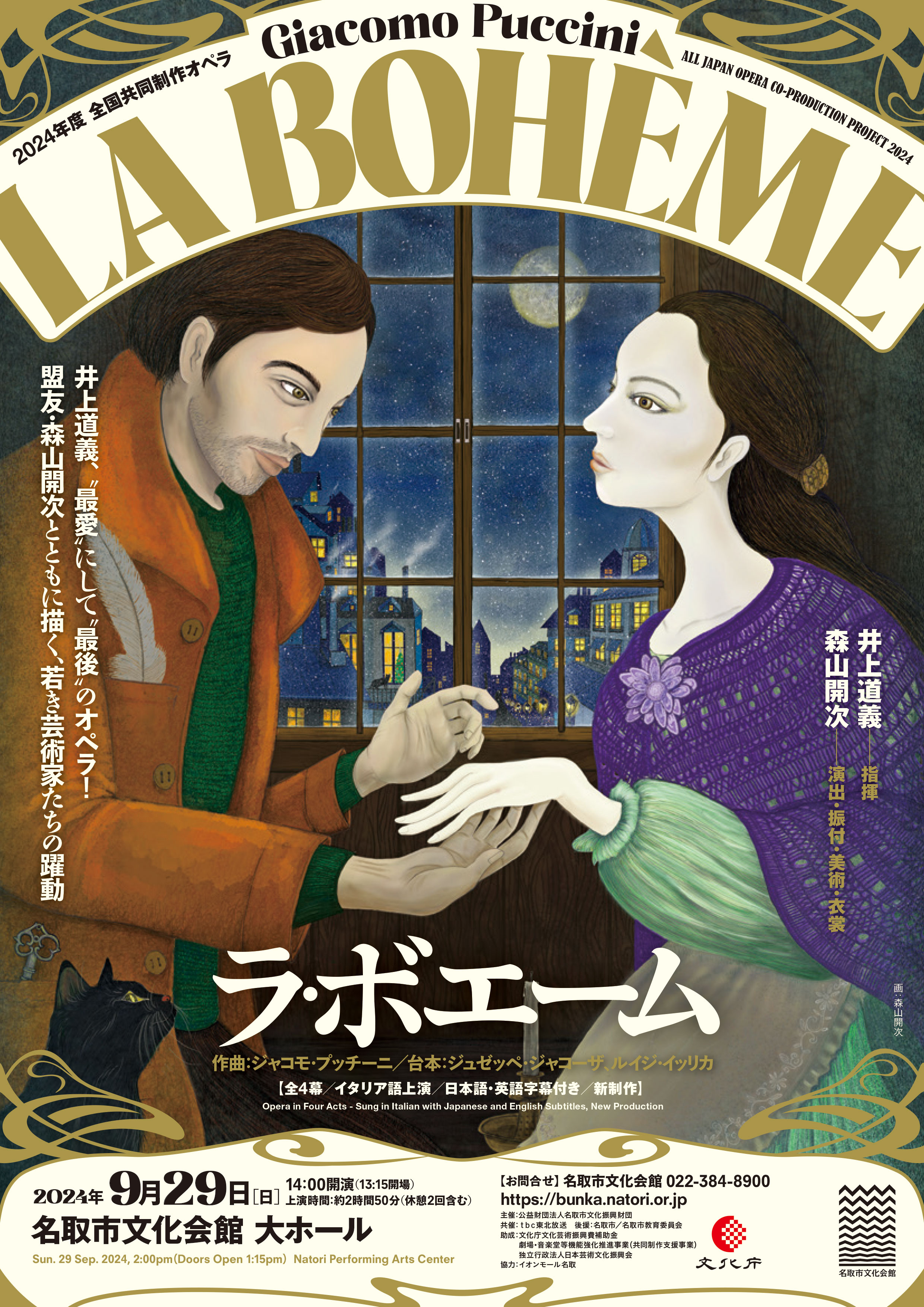 2024年末での引退を宣言している指揮者・井上道義が、自身最後となるオペラに選んだのは“最愛のオペラ”と語る《ラ・ボエーム》の新制作。演出には、深い信頼を寄せる舞踊家・演出家の森山開次を指名。幾多のコラボレーションで次々と鮮やかなステージを生み続けてきた名コンビが、日本&海外混成による新進気鋭の歌手陣とともに、創造とイマジネーションあふれる新たな舞台を全国7都市から世界へ発信する。芸術を愛する全ての人に贈る、特別な《ラ・ボエーム》が2024年秋、幕を開ける。