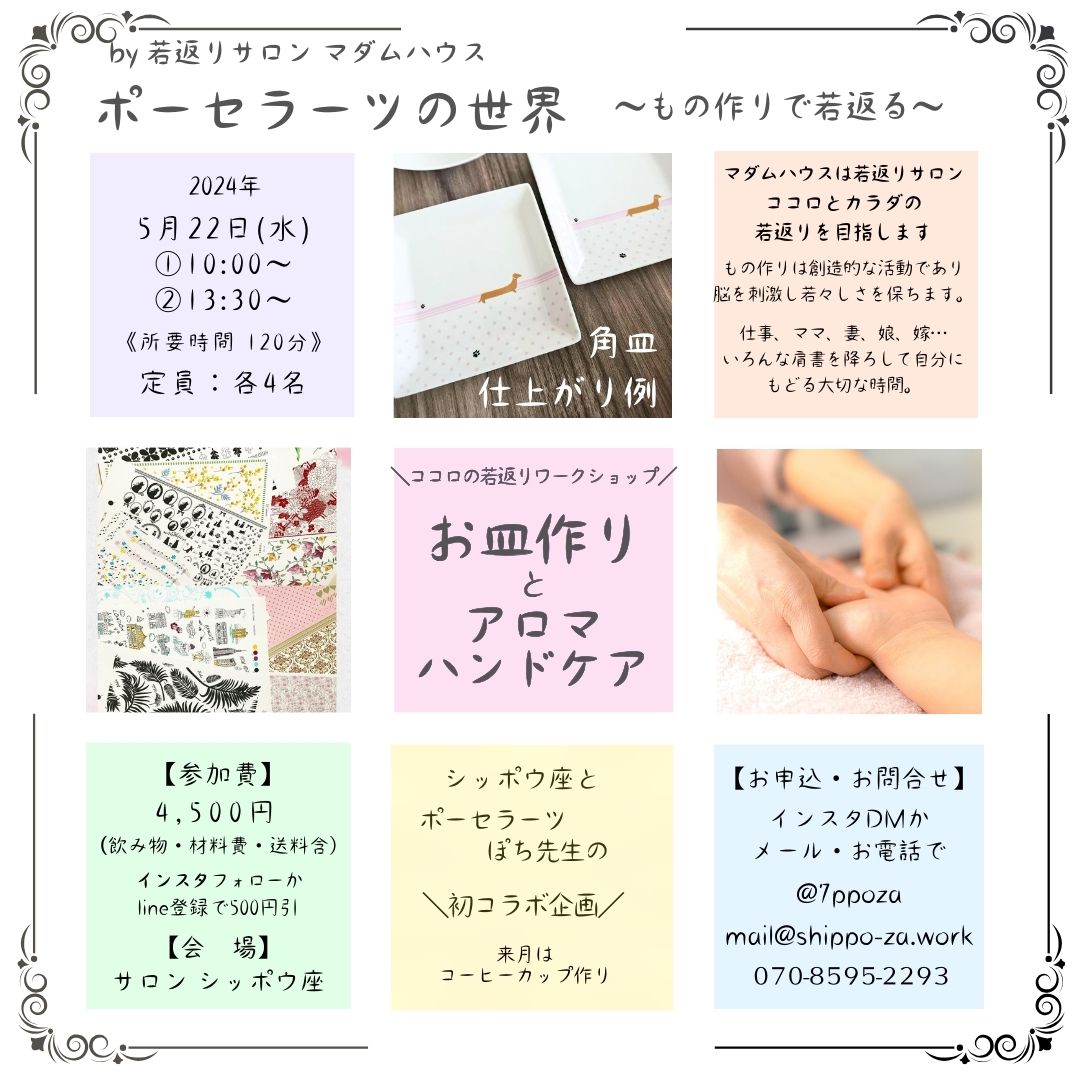 #ポーセラーツ #ハンドクラフト #女性応援 #講座 #ワークショップ #骨盤体操 #シッポウ座 #女性の居場所 #マダムハウス #mamaのおうち #チベット体操 #アロマ #仙台イベント #チャクラ #カラーセラピー #アロマセラピー #ヒーリング #算命学 #オラクルカード #北仙台占い #北仙台 #健康 #老化防止 #自分探し #女性応援 #若返り