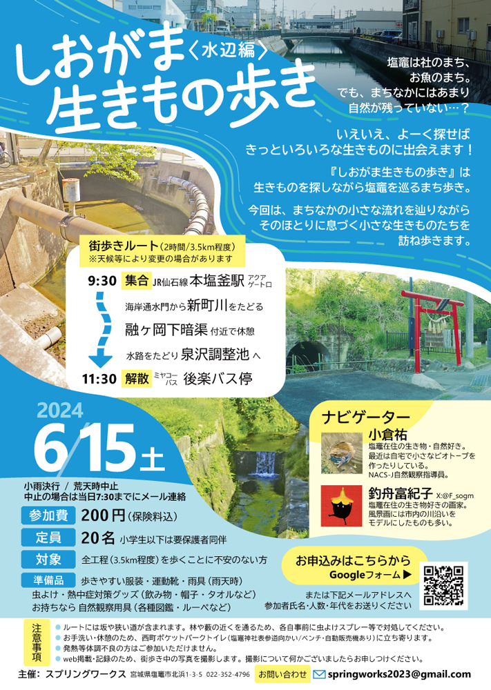このイベントは、生きものを探しながら塩竈を巡るまち歩き。