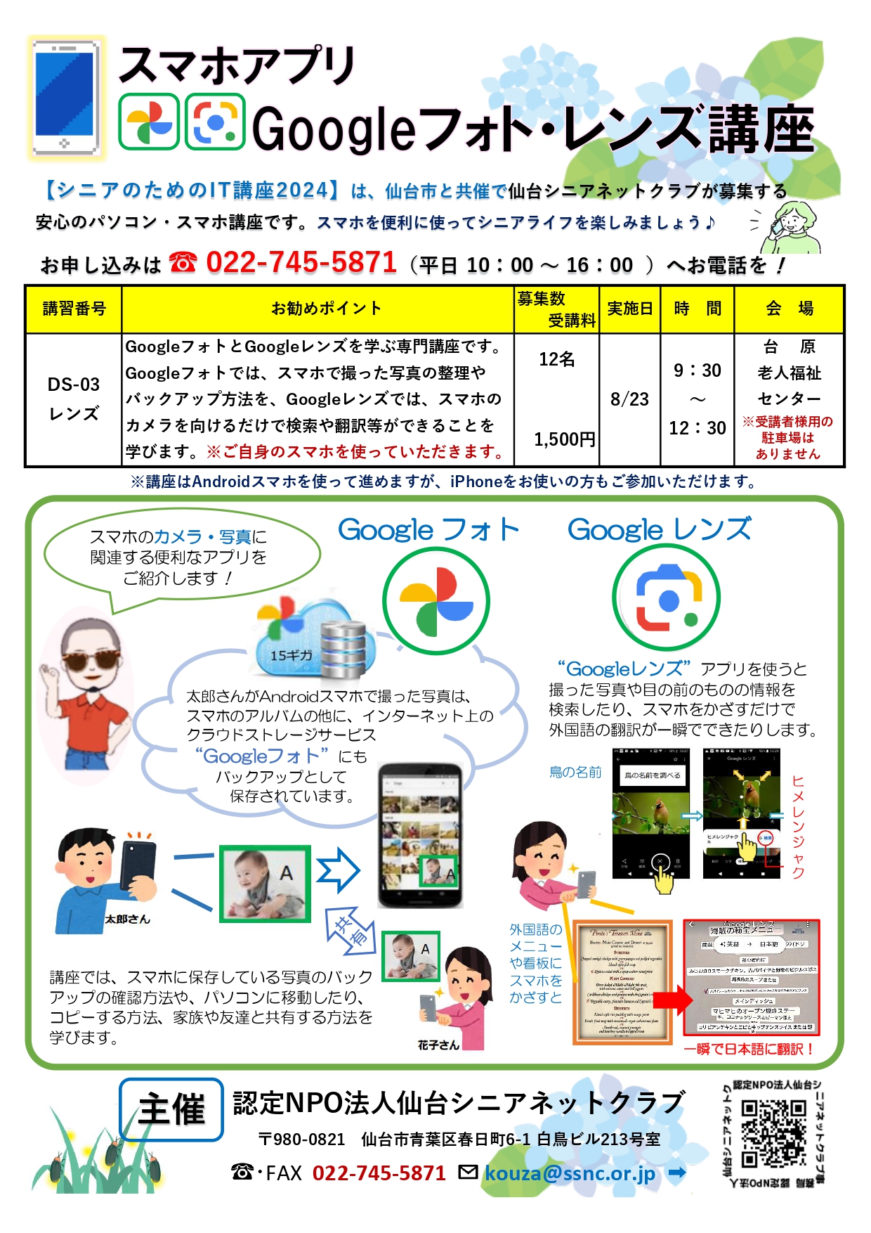 スマホアプリ「Googleフォト・レンズ」講座のご案内