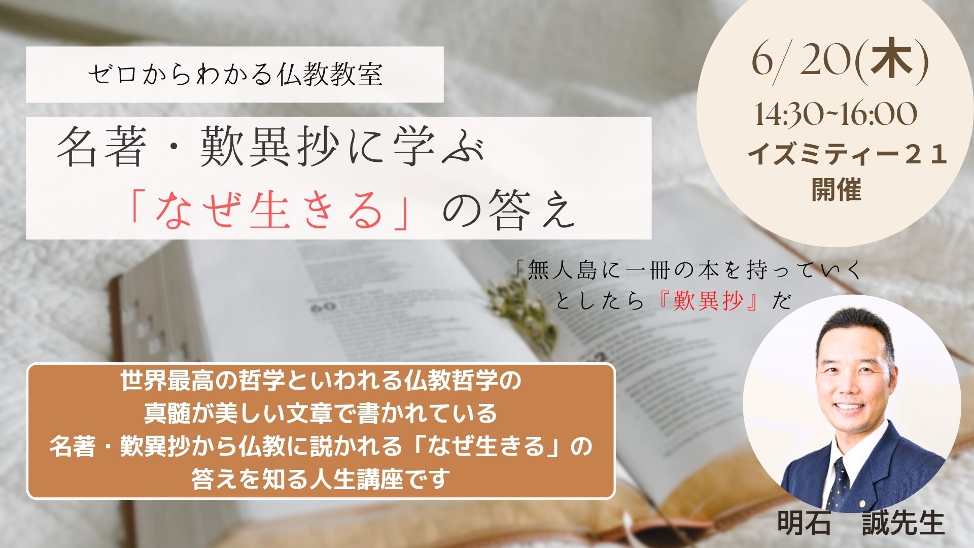 「無人島に一冊の本を持っていくとしたら『歎異抄』だ」(作家・司馬遼太郎)「万巻の書の中から、たった一冊を選ぶとしたら、『歎異抄』をとる」(哲学者・三木清)。仏教書としては、最も多くの人に読まれている「歎異抄」を賞賛する人は絶えませんが、そこに記されている内容を正しく知る人は少ないようです。世界最高の哲学といわれる仏教哲学の真髄が美しい文章で書かれている名著・歎異抄から仏教に説かれる「なぜ生きる」の答えを知る人生講座です。これが分かれば、明るくたくましい人生が拓けます。