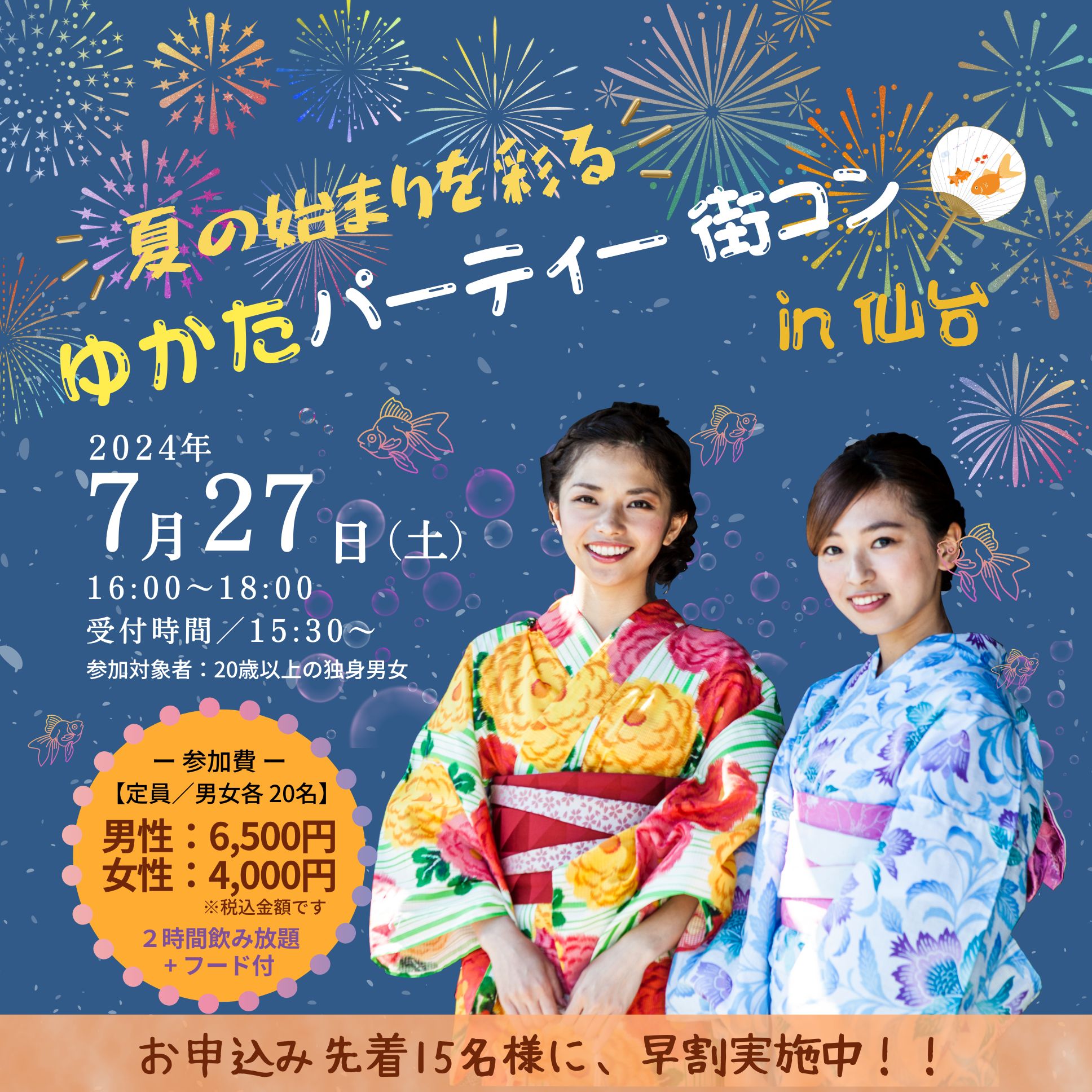 (昨年浴衣パーティー街コン参加実績:49名)