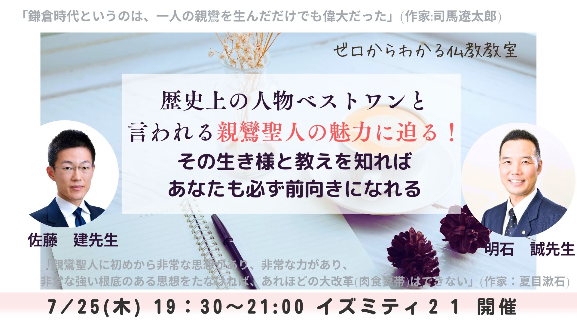 今回は、この親鸞聖人の生き様と教えを学ぶ仏教講座です。たくましい親鸞聖人の生涯を知れば、あなたも必ず前向きになれます。