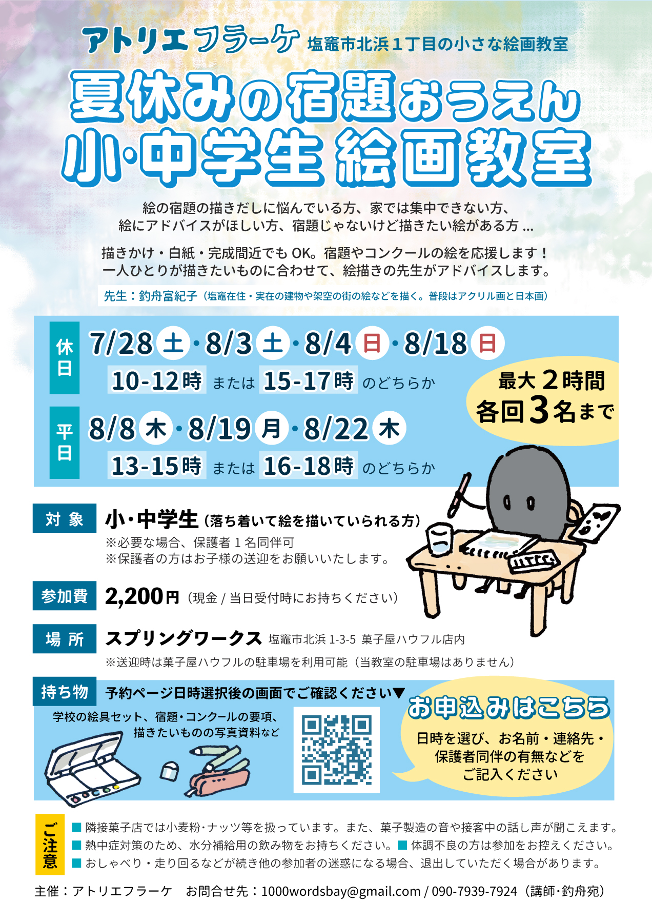 【対象】 小中学生(落ち着いて絵を描いていられる方)