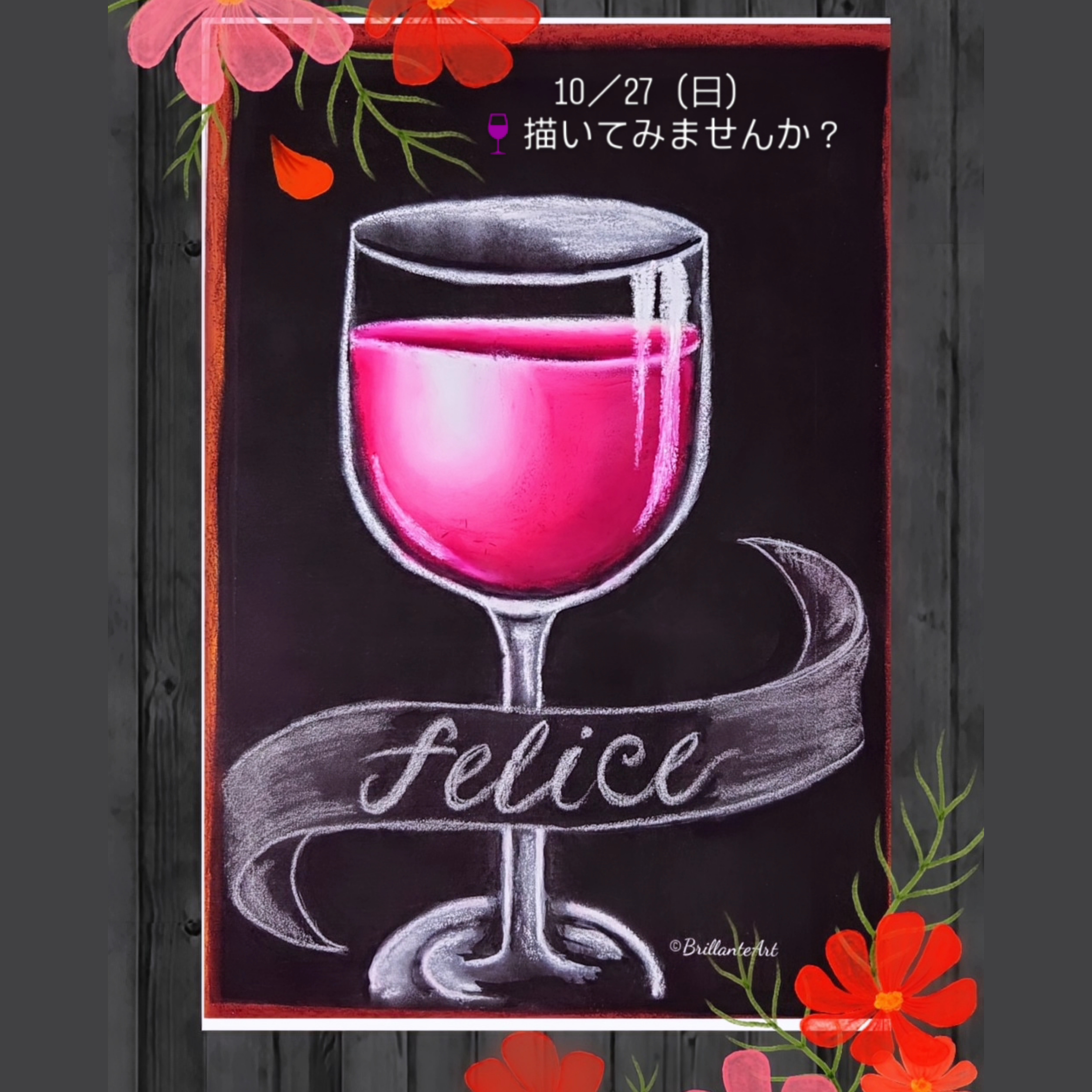 il mio campoさんのランチ後、チョークアートレッスンのイベントです。10月は ワインを描きます!