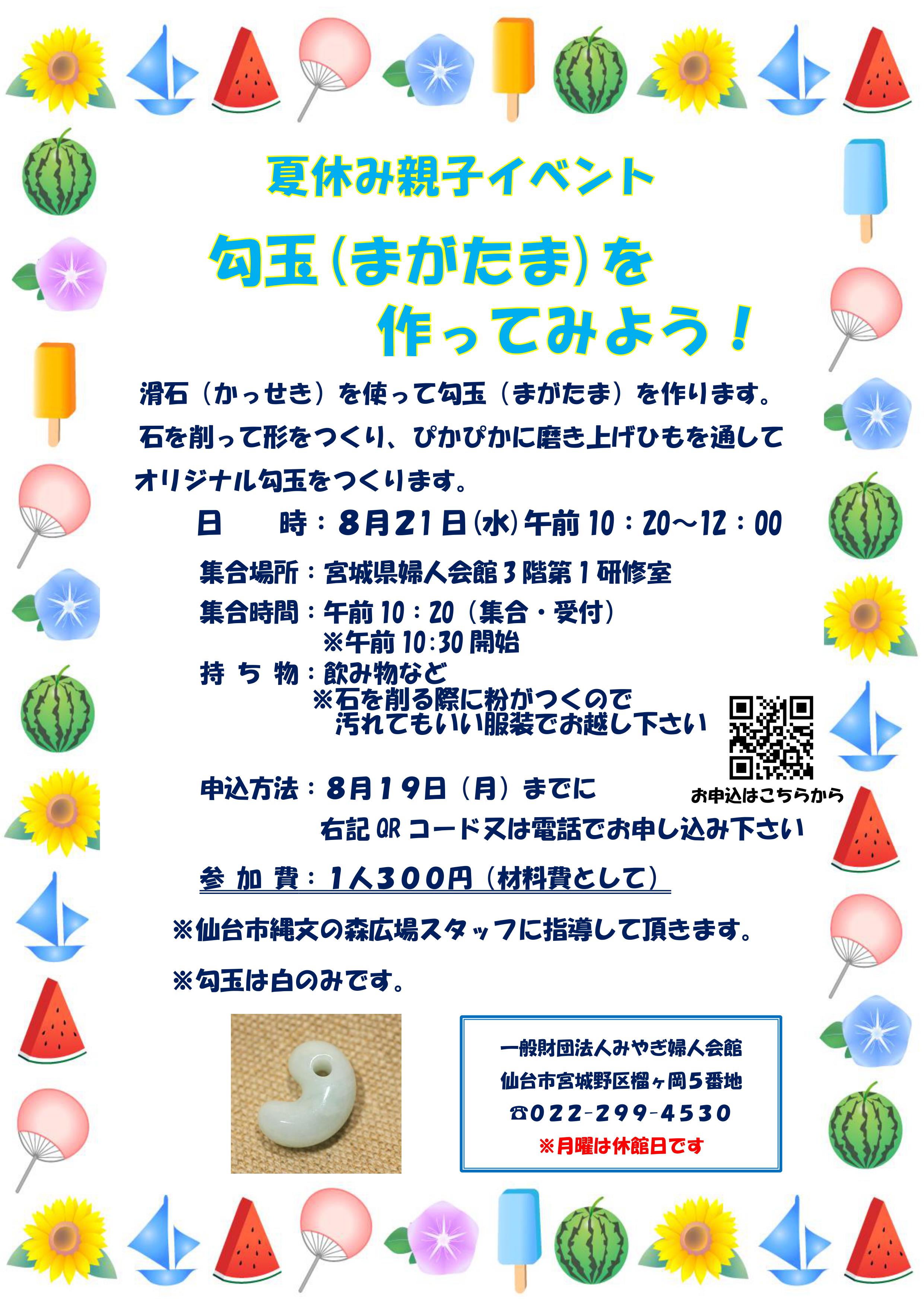 夏休み親子イベント【勾玉(まがたま)を作ってみよう!】