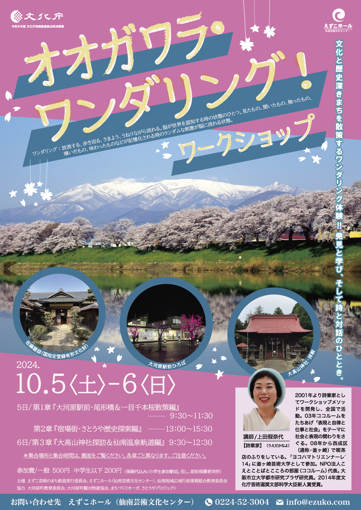 私たちの周りは大切にしている場所。そうした場所は、地域のそこかしこにあります。人知れず佇む風景の向こう側にある歴史や想い。そんな場所と向き合い、声なき声に耳を傾け、心で感じる時間。場所、人との対話、そして詩づくり。いまを生きる私たちの足元に灯りを燈します。国指定有形文化財さとうやにもお邪魔します。この機会お見逃しなく。なお、小学生からご参加いただけます。*原則、保護者同伴