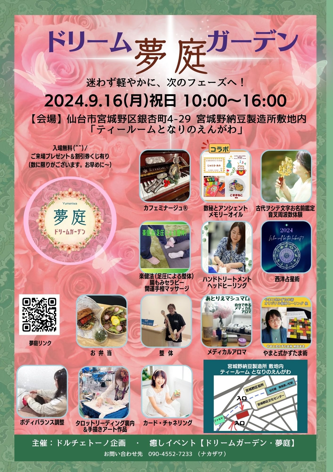 仙台市近辺の皆さま!癒しのアットホームイベント【ゆめにわ】に是非いらしてください。占い、レジンアート、点描曼荼羅、整体などプロ集団でお迎えします。ささやかな全員プレゼントあり。今回は岩沼市のカフェ【夢彩Caf?】さんが飲食提供してくださいます。果物のスムージーも予定してますよ!