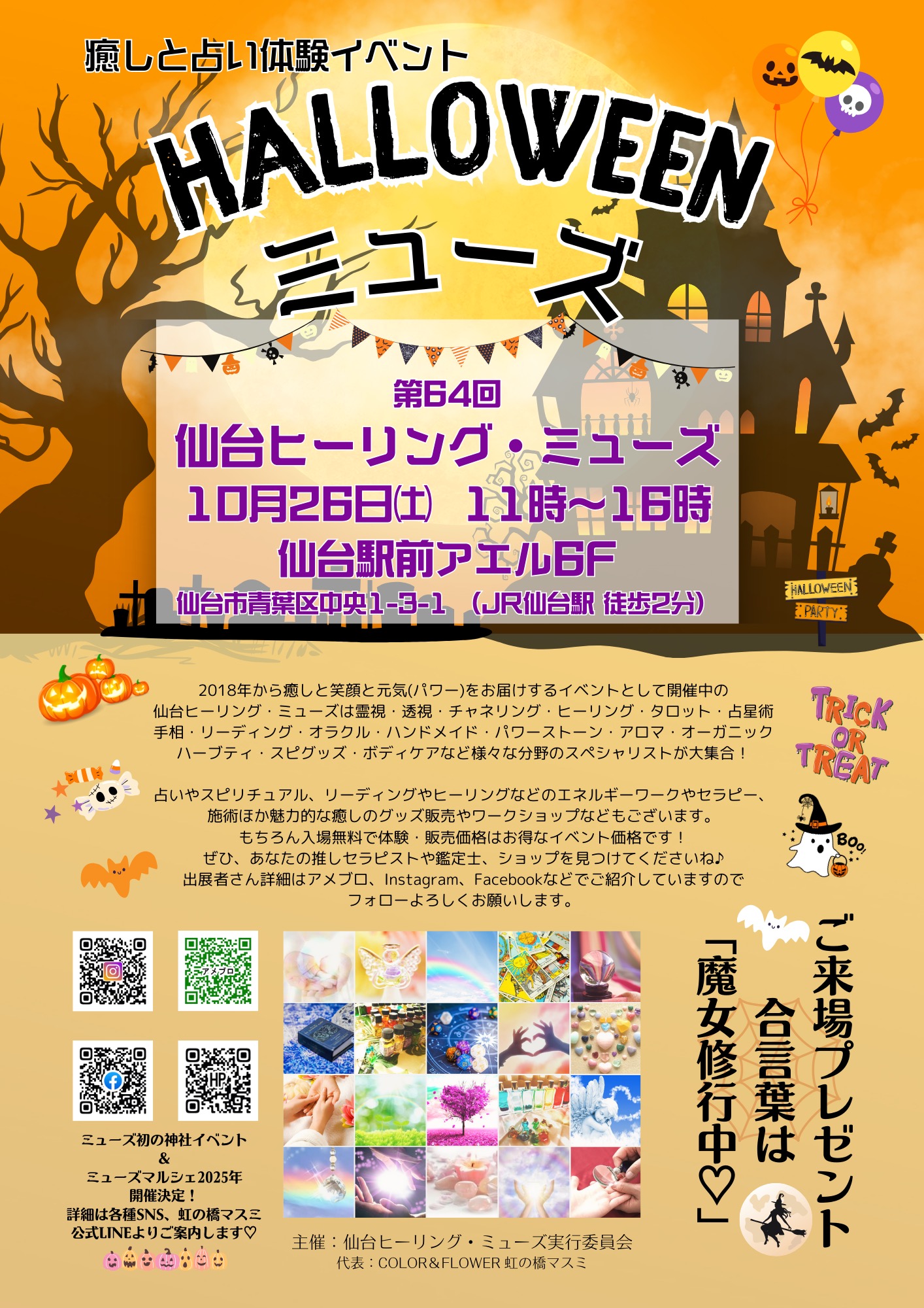 https://ameblo.jp/sendai-healing-meuse/https://www.instagram.com/sendai_meuse/10月26日(土)はハロウィンミューズ開催