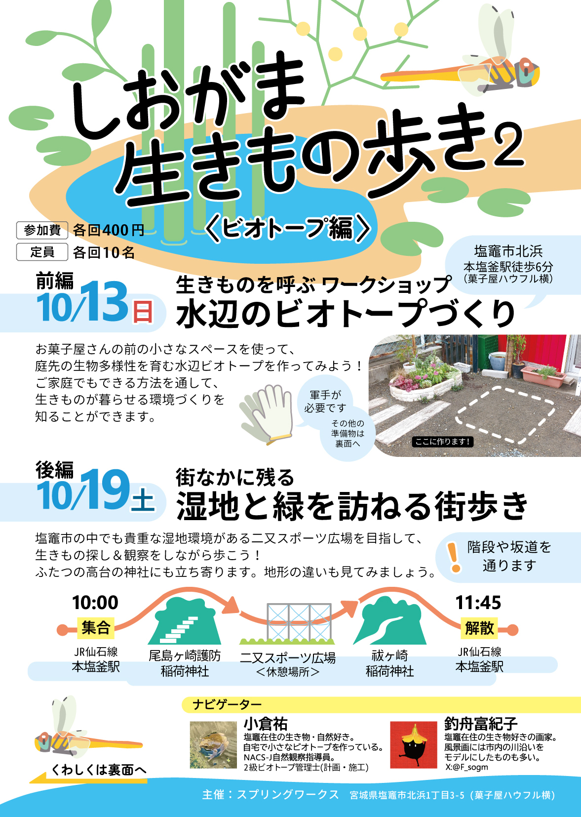 塩竈市の中でも貴重な湿地環境がある二又スポーツ広場を目指して、