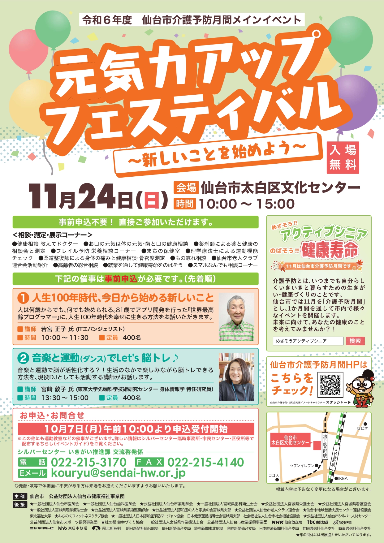 仙台市は11月を「介護予防月間」として、健康づくりのための様々なイベントを開催します。