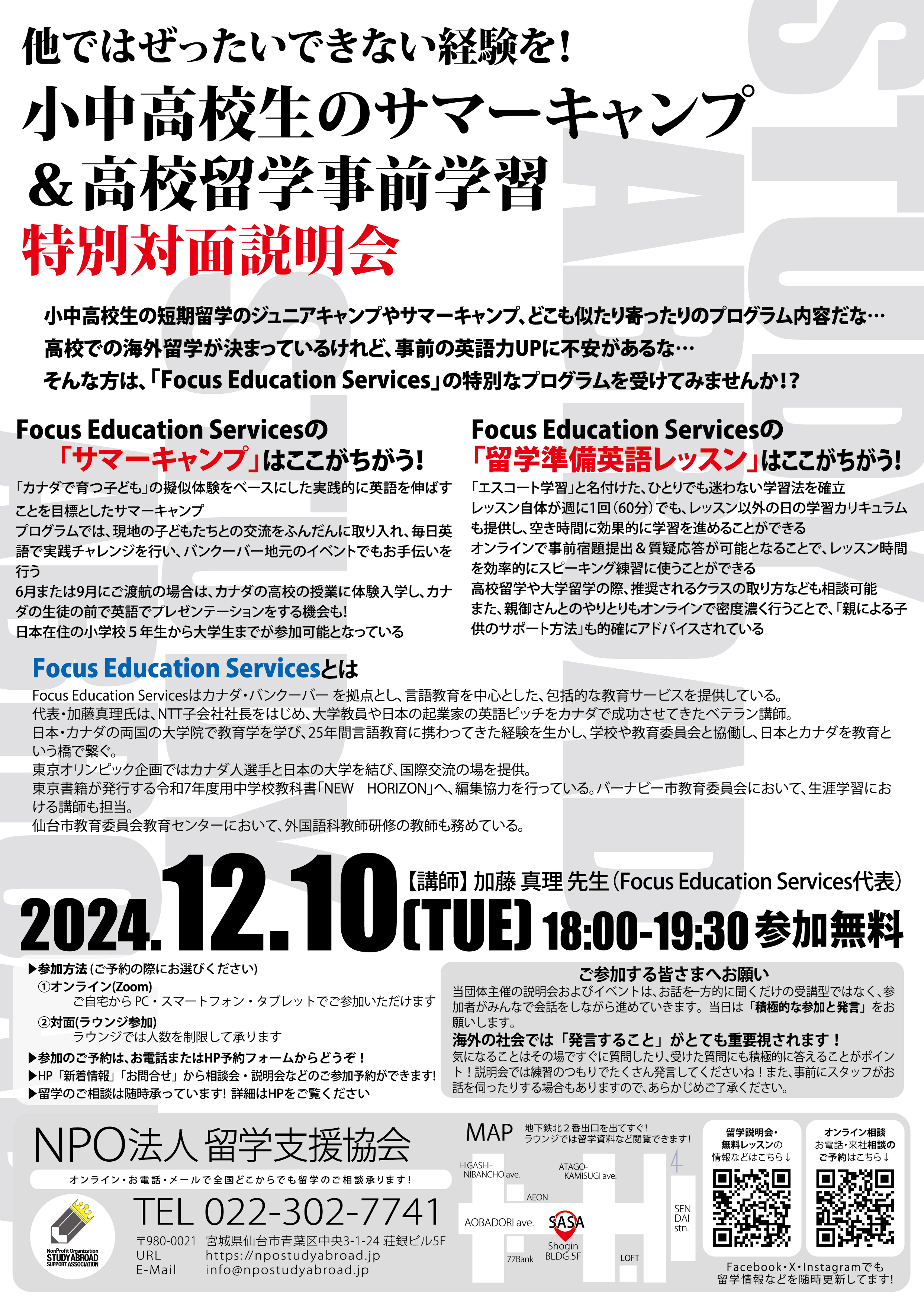 そんな方は、「Focus Education Services」の特別なプログラムを受けてみませんか!?
