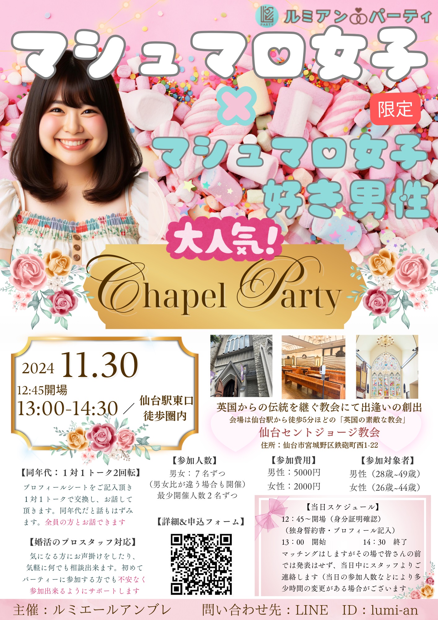 マシュマロ(ぽっちゃり)女子さん&マシュマロ女子さんと出逢いたい方向けの仙台婚活パーティ